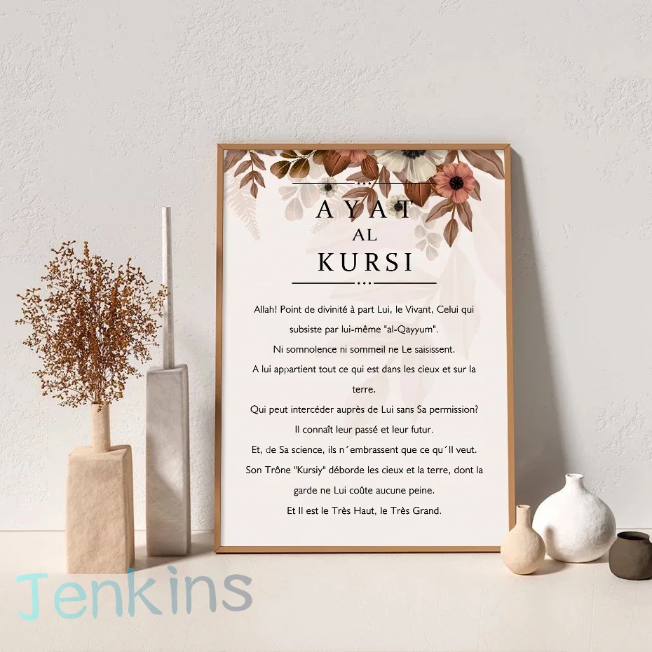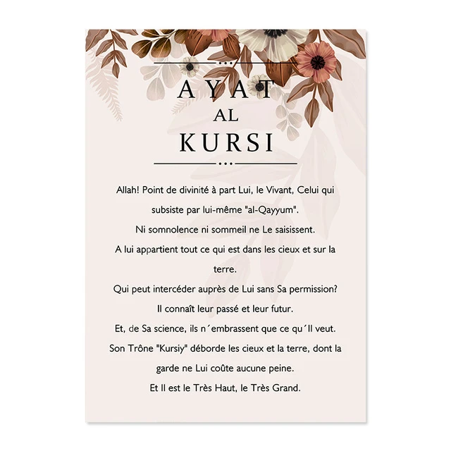 Мусульманская каллиграфия Ayat Al-Kursi Коран французский цветочный...