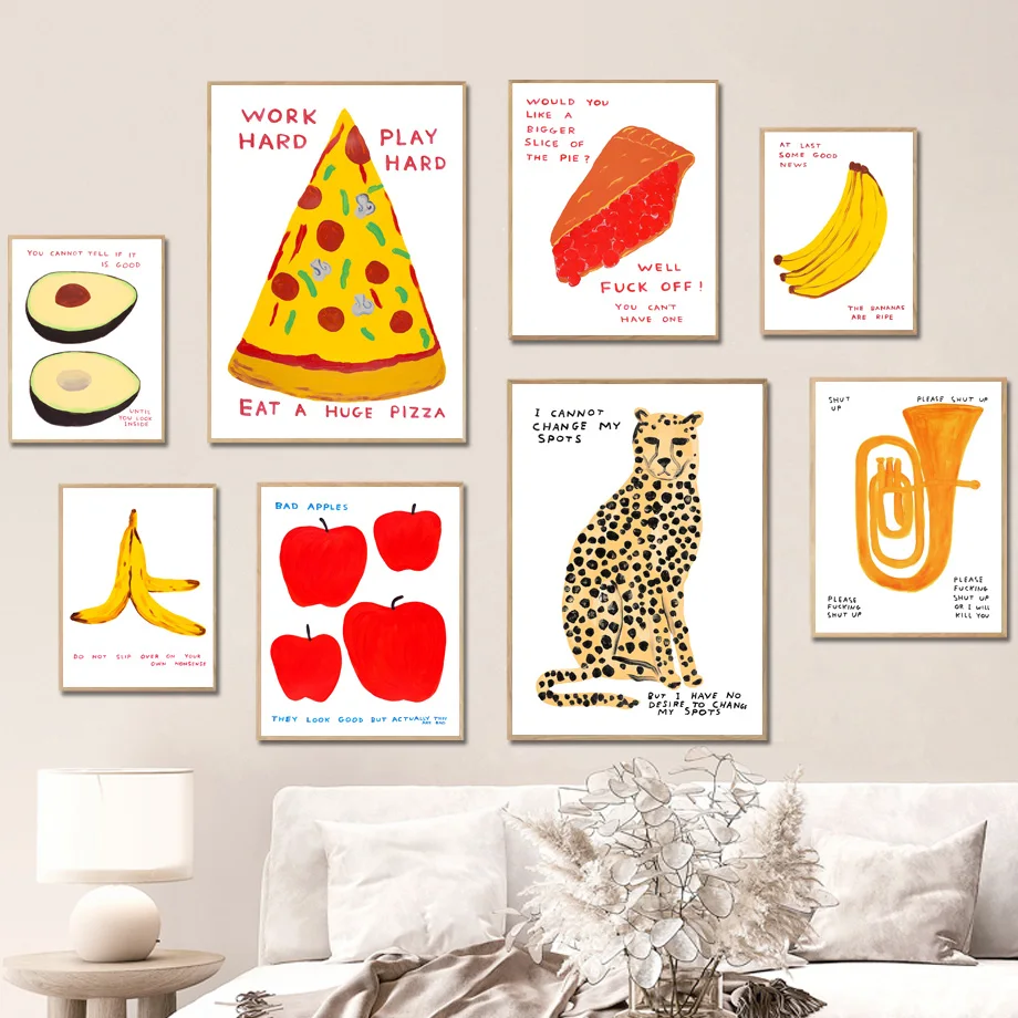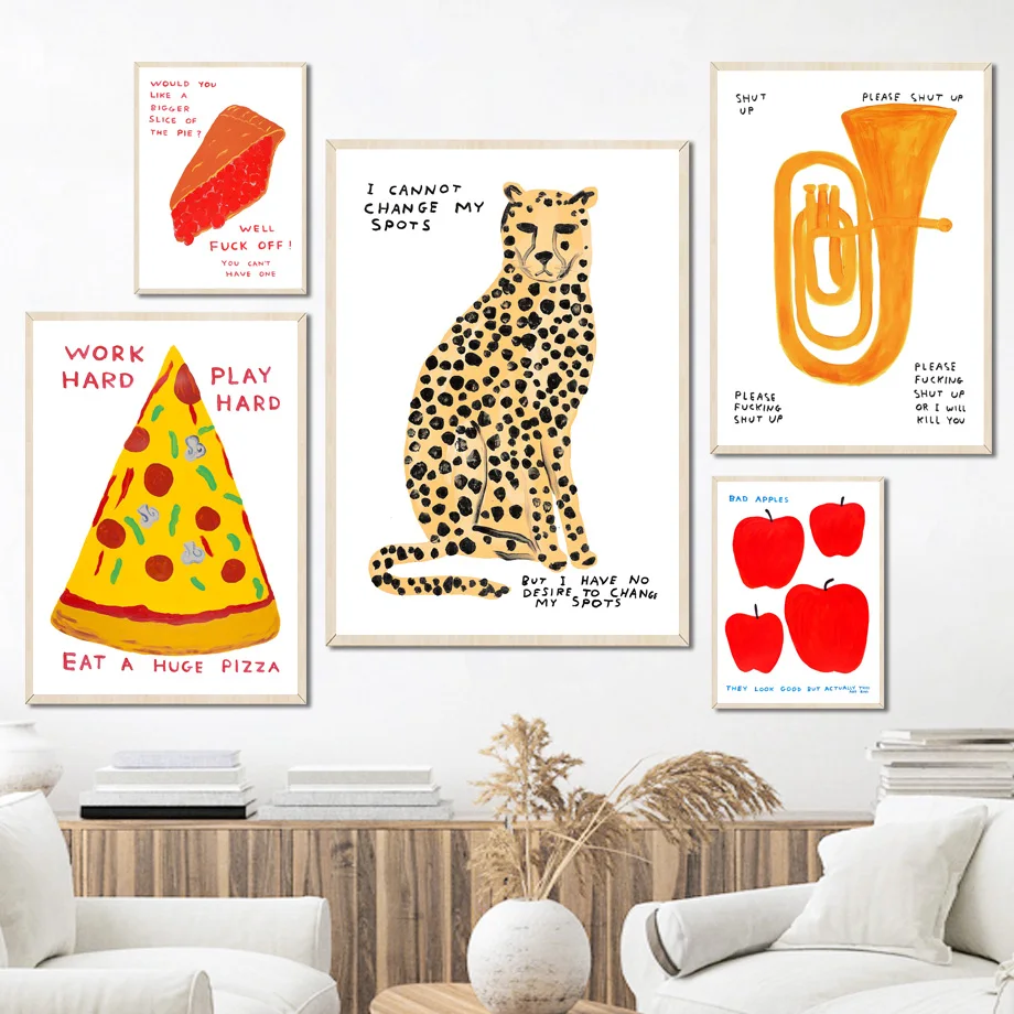 David Shrigley leopard пицца жикле Современная Настенная Картина на холсте Северный постер и принты настенные картины для декора гостиной
