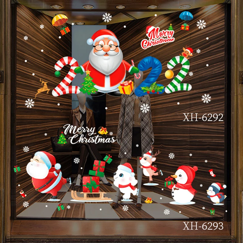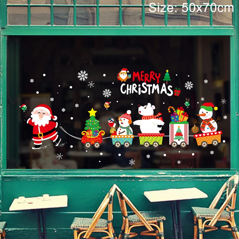 Санта-Клаус, Рождественский поезд, наклейки на окна, рождественские украшения для дома, Рождество 2022, рождественские украшения, подарок с новым годом 2023