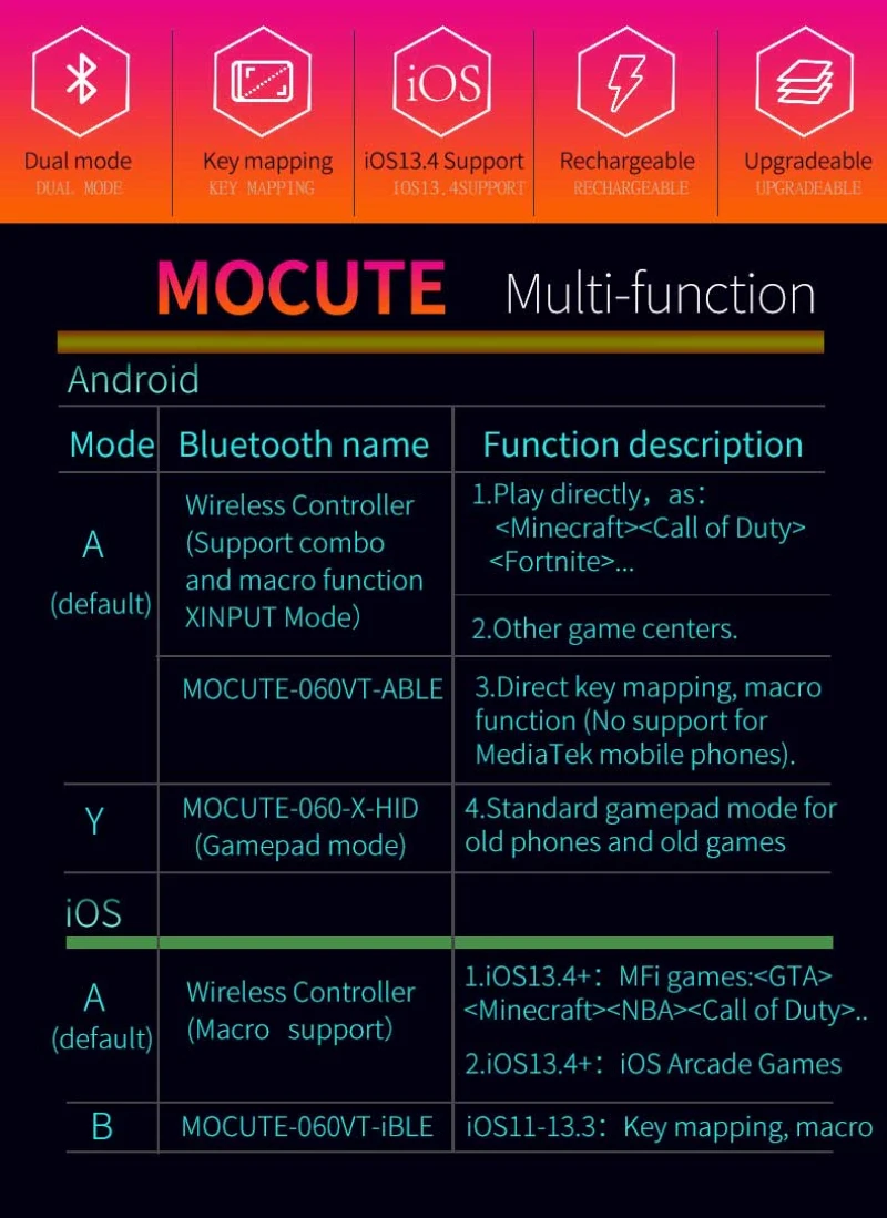 Изготовлен из высококачественного материала, очень прочный. Эргономичный дизайн для комфортной и приятной игры. Поддержка Android 3,2 выше, IOS 7,0-9,2 и для Windows operate sysytem и так далее.