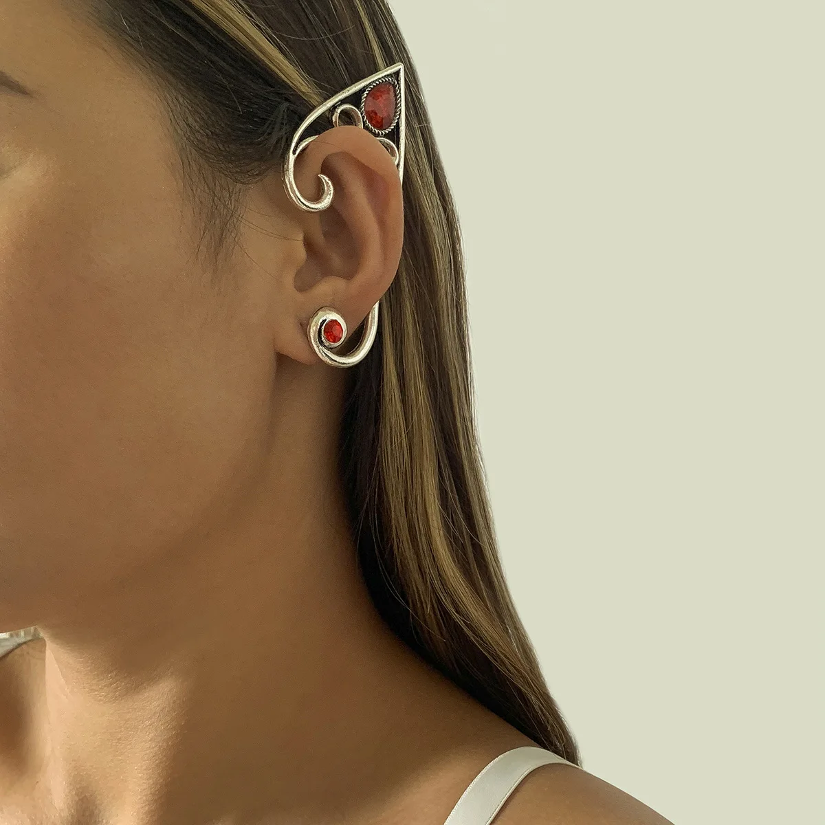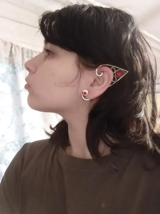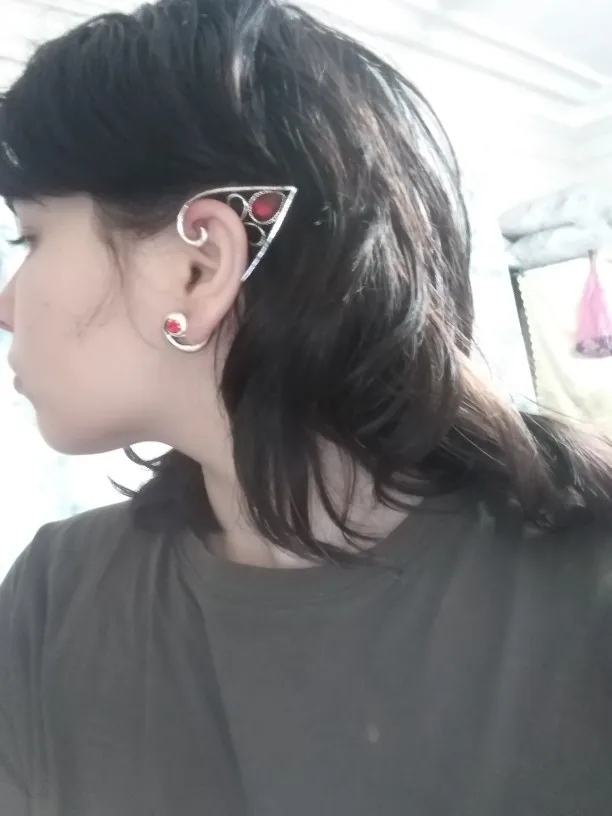 Название: женские ретро-сережки в стиле панк с ушками рубинового эльфа, волшебные Волшебные клипсы для ушей, темно-полые сережки серебряного цвета на Хэллоуин, вечерние аксессуары