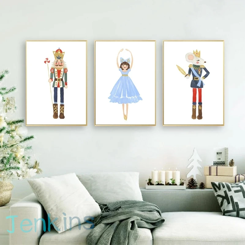 Акварельные гайкеры, балетная принцесса, солдат, фотография на холсте, картины, рождественские праздники, домашний декор