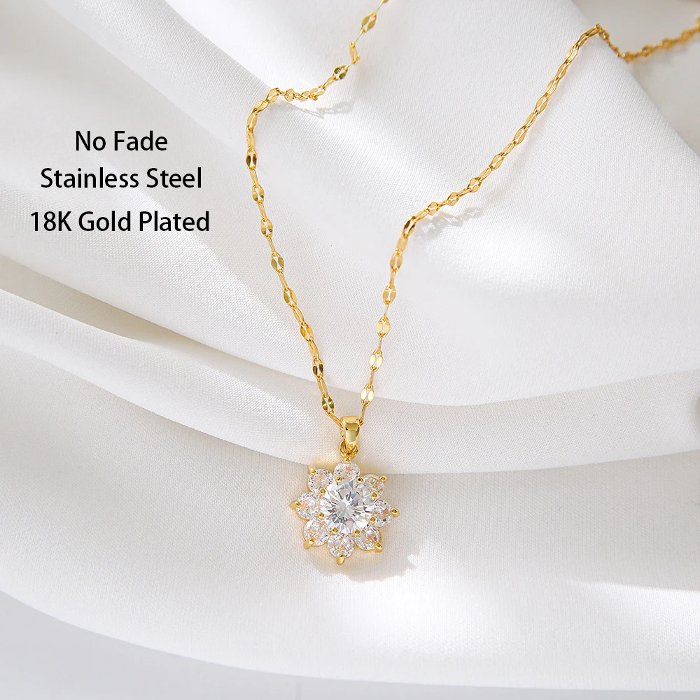 Женская цепочка с подвеской в виде подсолнуха из циркона