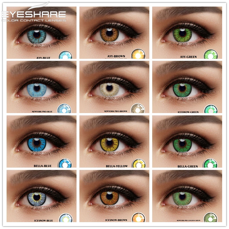 Цветные контактные линзы EYESHARE для глаз, 2 шт., косметические цветные линзы ed, зеленые, синие натуральные линзы, контактные линзы, красота, макияж глаз