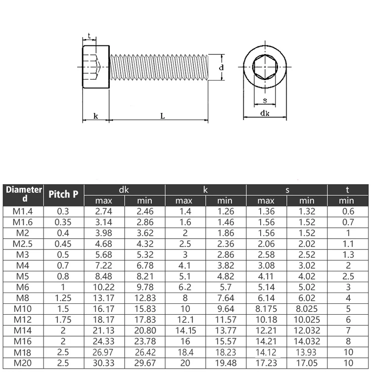 Длина: головка в комплект не входитD: диаметр резьбыL: Длина резьбыK: толщина головкиDk: диаметр головкиS: шестигранный оппситT: Глубина резьбы