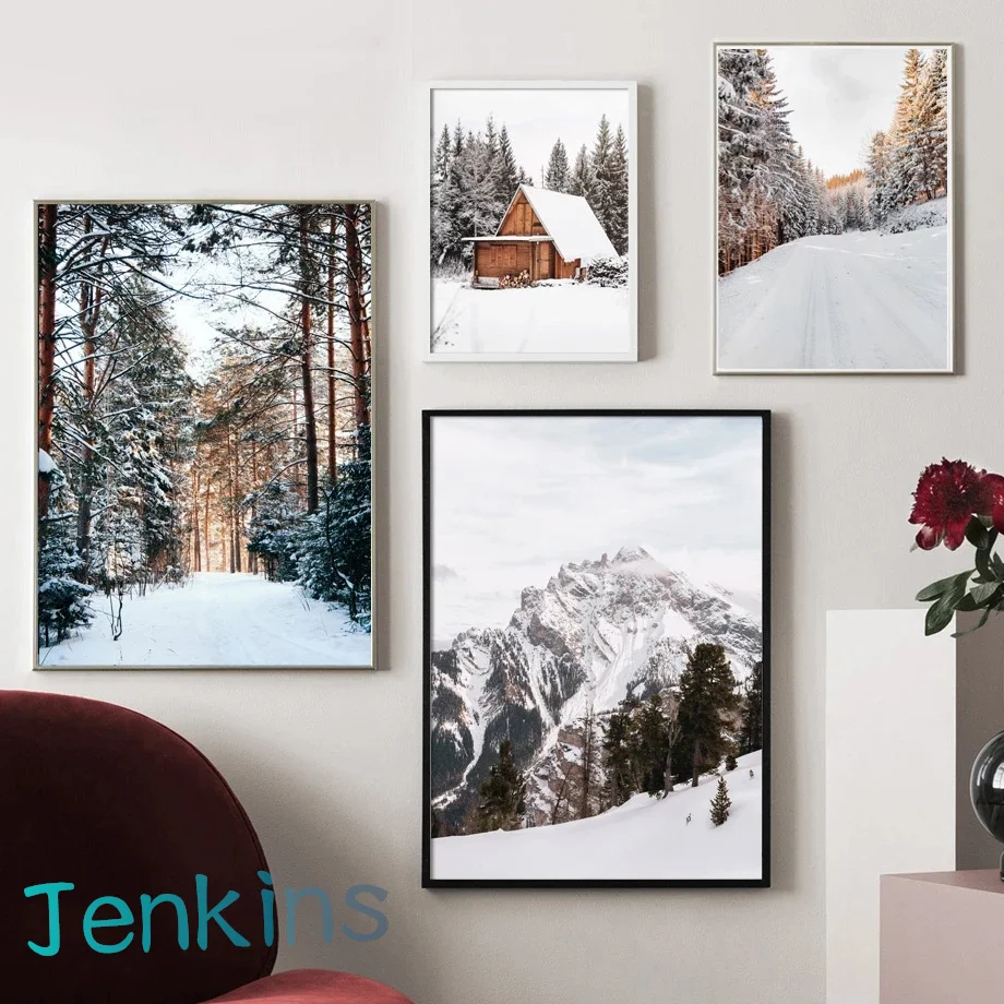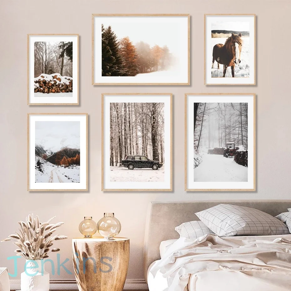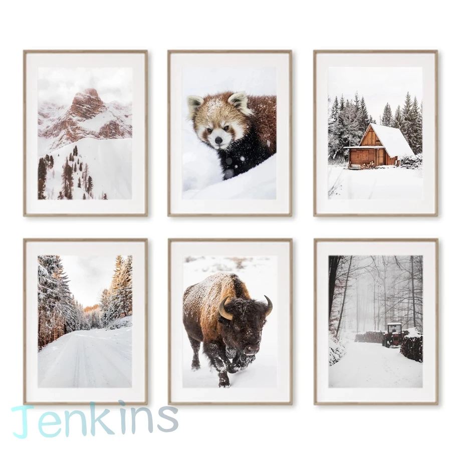 Снежная зимняя сцена Як енот лошадь Тайга горная кабина Скандинавская настенная живопись на холсте постеры и принты Декор для гостиной
