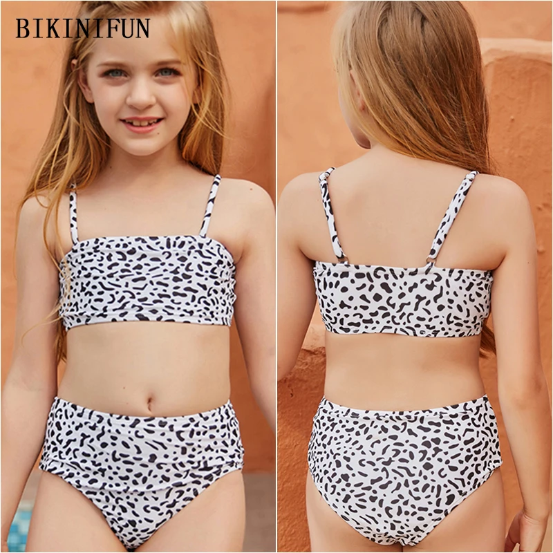 Женский новый милый купальник с леопардовым принтом для подростков, детский купальник с высокой талией, пляжная одежда с открытой спиной для девочек, Детский комплект бикини