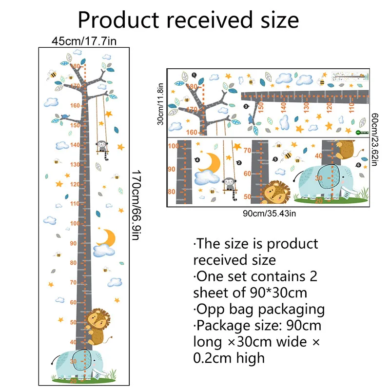 Мультяшный жираф, измеритель роста для детей, наклейки с животными,...