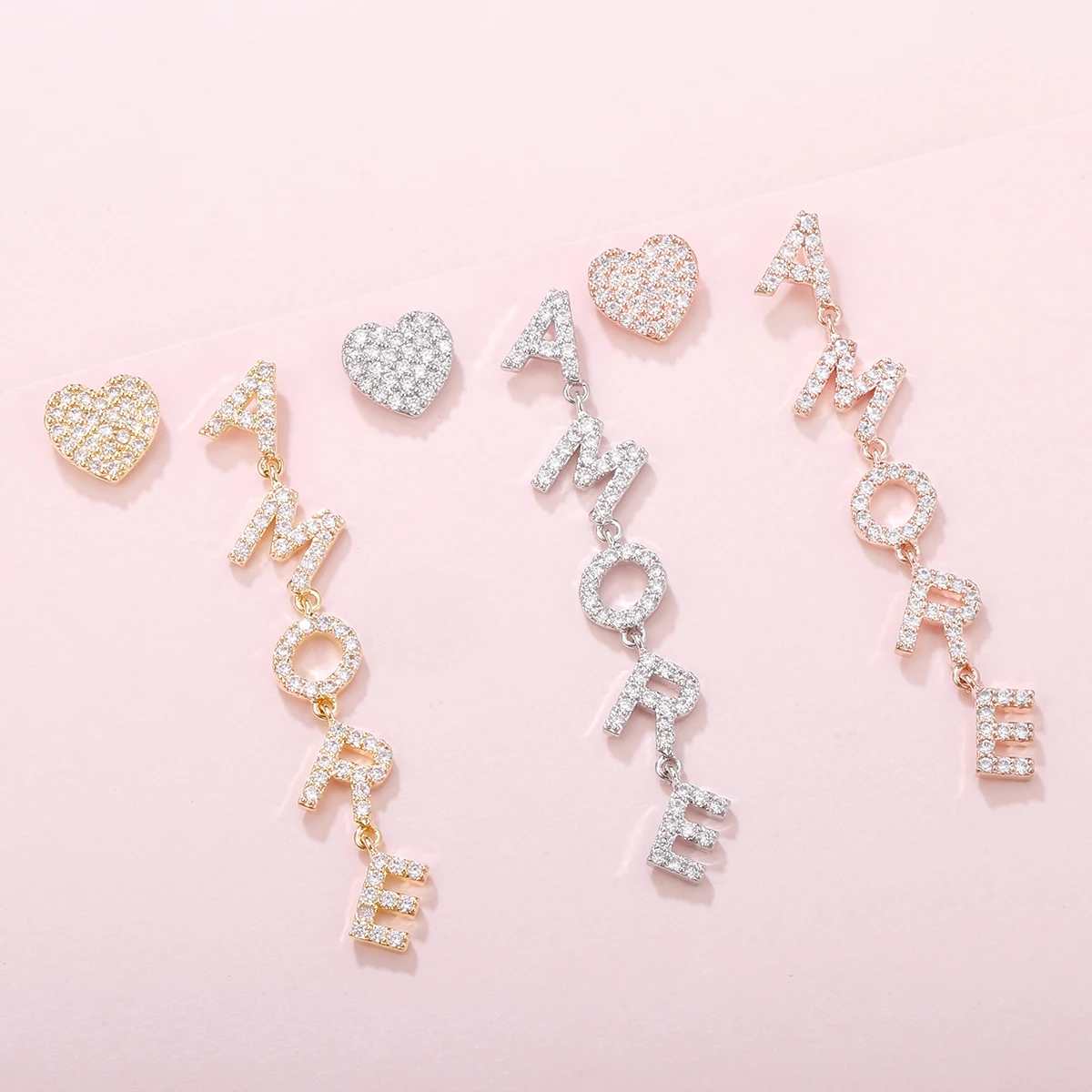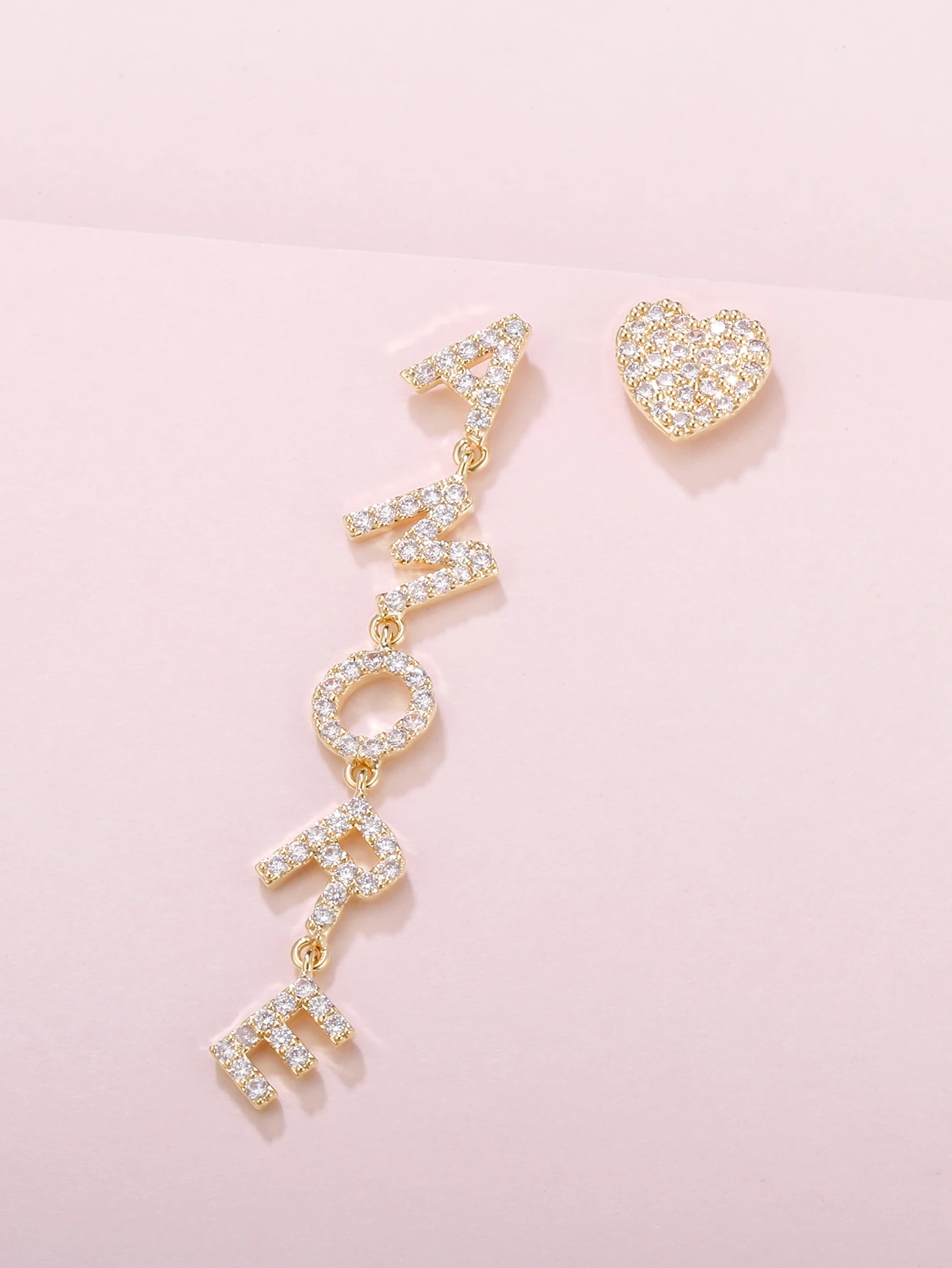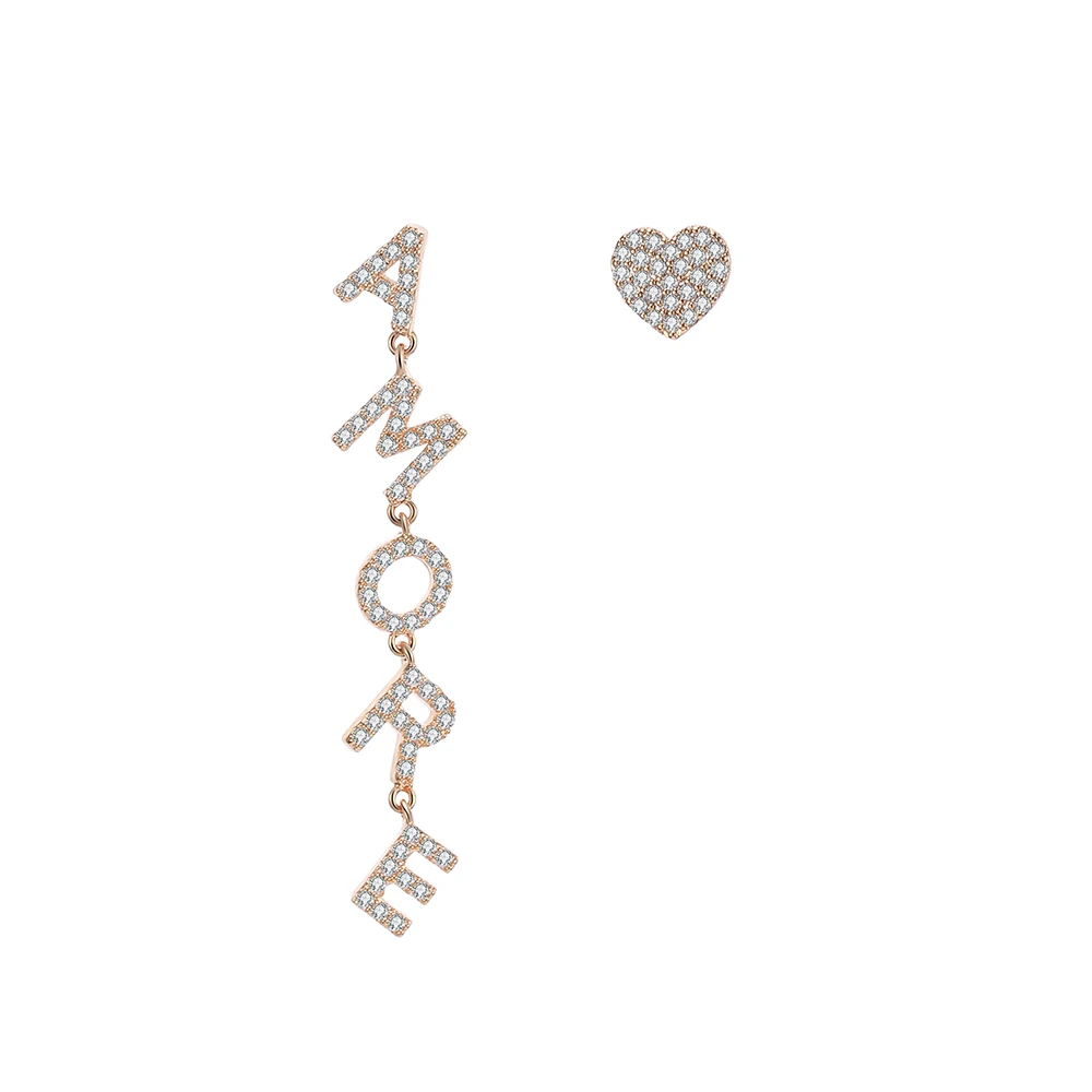 Позолоченные буквы в форме сердца, асимметричная женская модель, роскошный кубический цирконий, подарок для свадебной вечеринки