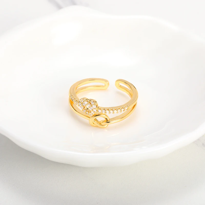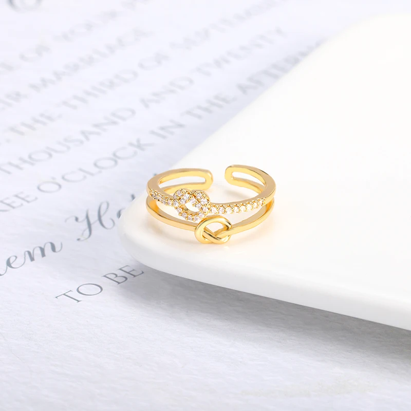 НОВЫЕ геометрические открытые кольца с кристаллом циркония, милые двойные дизайнерские женские кольца золотого цвета, модные кольца, оптовая продажа, свадебные украшения, подарок