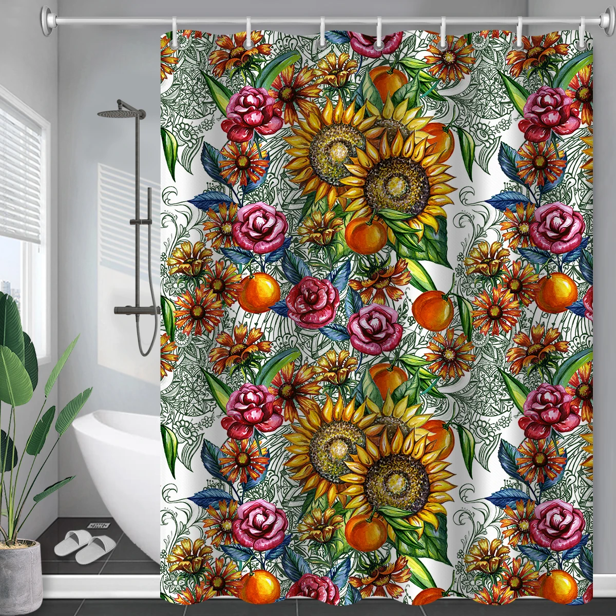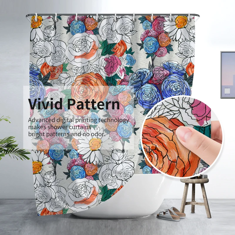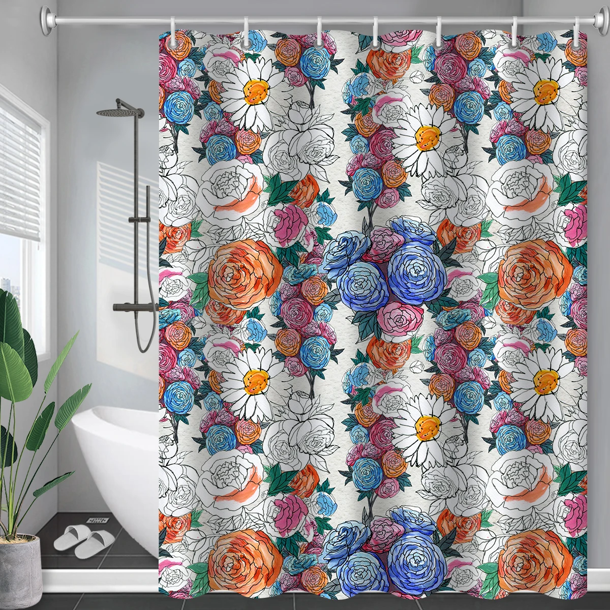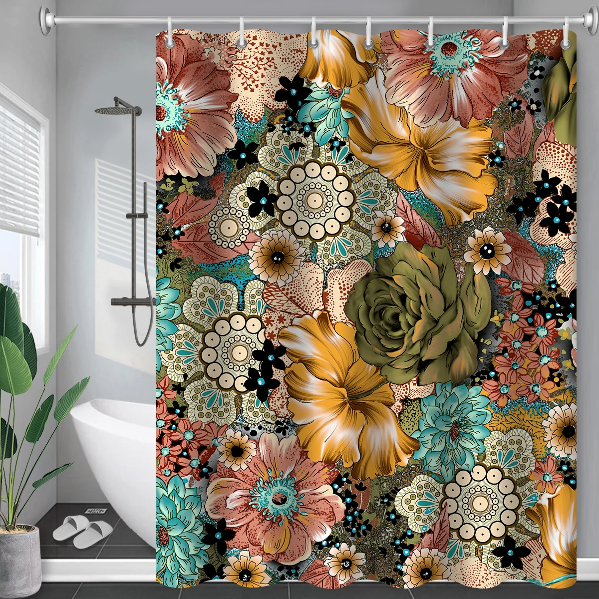Длинная занавеска для душа Neasow в стиле бохо с цветочным принтом, прочная водонепроницаемая занавеска из ткани с крючками для ванной комнаты