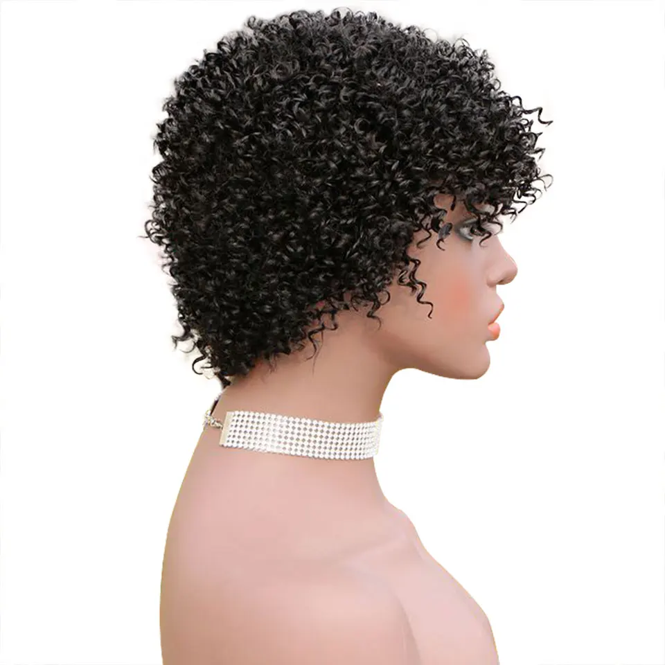 Волшебные парики для девушек, кудрявые парики с челкой, кудрявые парики боб, Кудрявые Парики Remy из человеческих волос естественного цвета для женщин