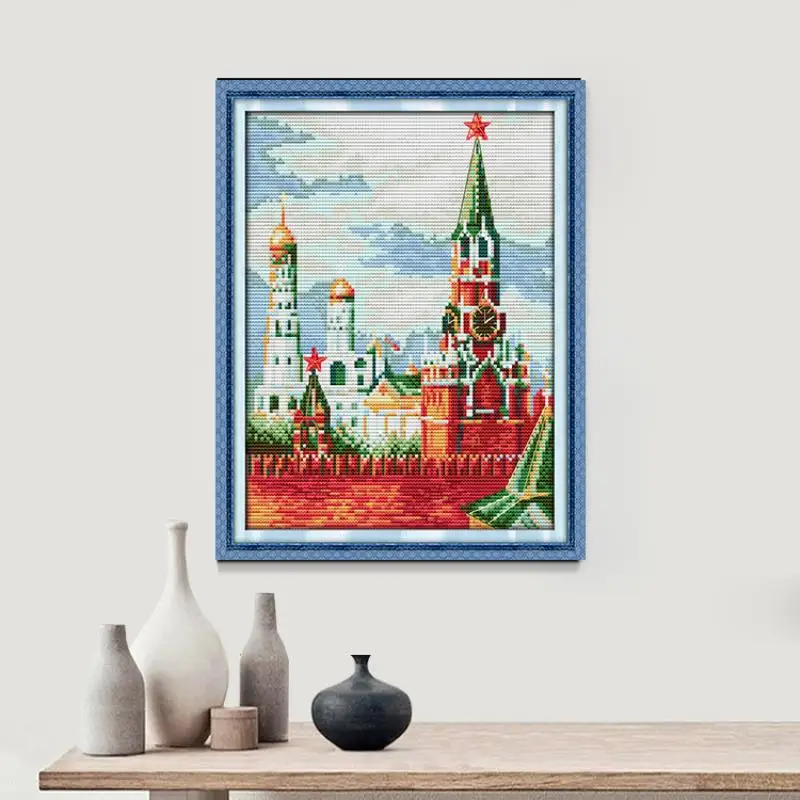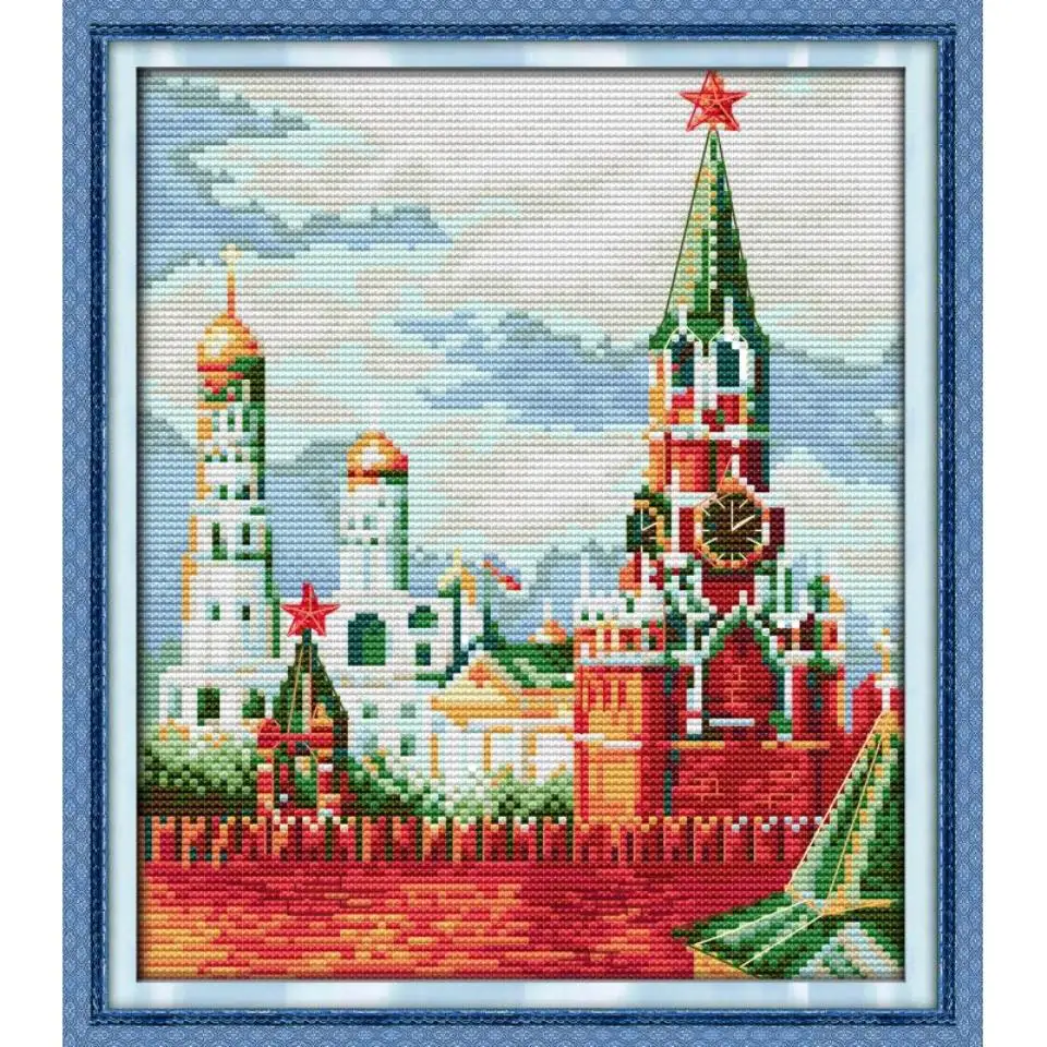 Набор для вышивки крестиком Joy Sunday, Набор для вышивки крестиком с изображением Московского Красного квадрата и пейзажа, рукоделие для вышивания, домашний декор