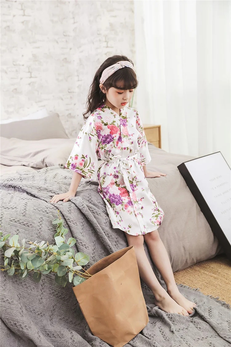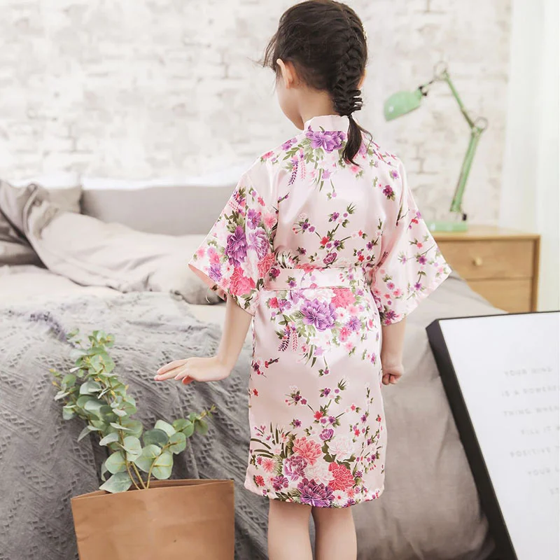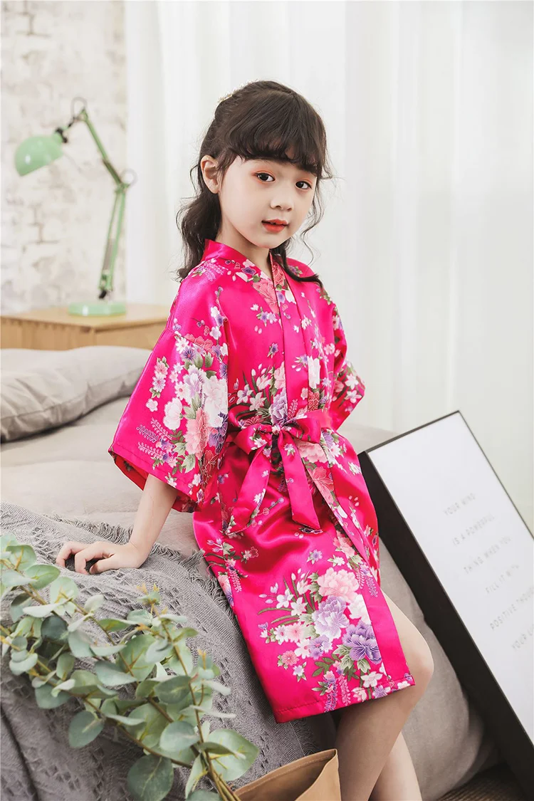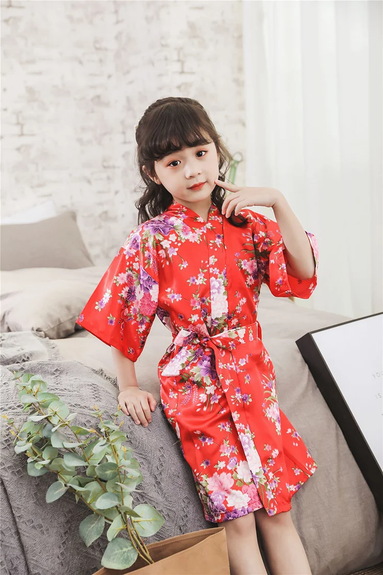 Шелковый Атласный халат для детей, цветочный халат, Короткое Кимоно...