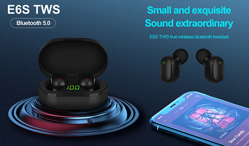 Беспроводные наушники E6S TWS с поддержкой Bluetooth 5,0, миниатюрные спортивные наушники с сильными басами и цифровым дисплеем, наушники-вкладыши для телефона