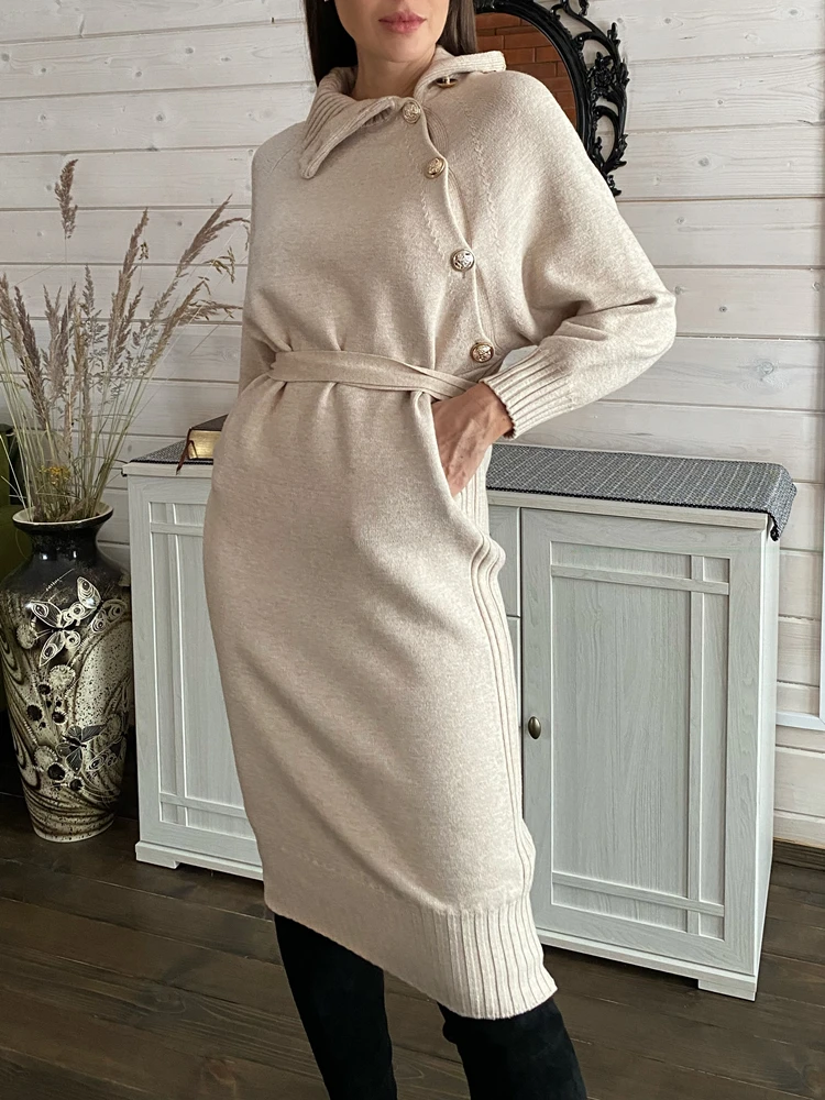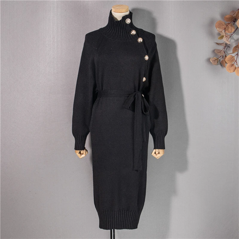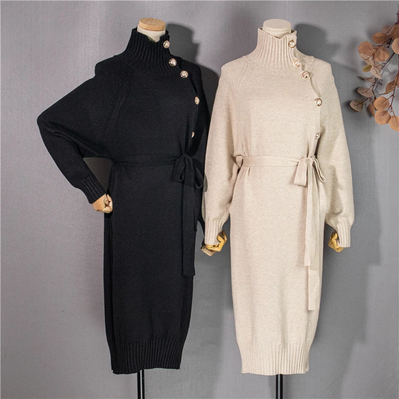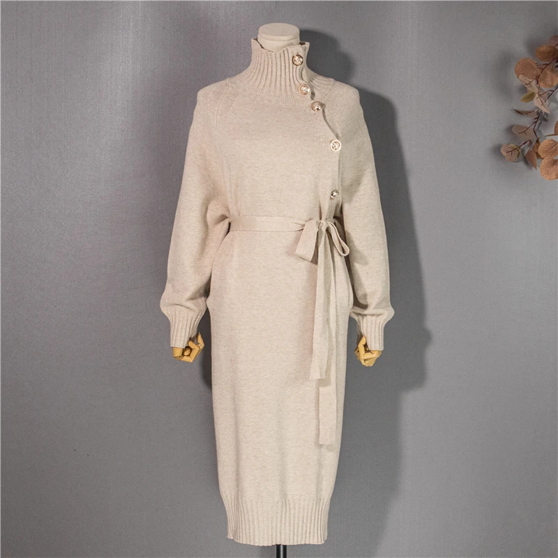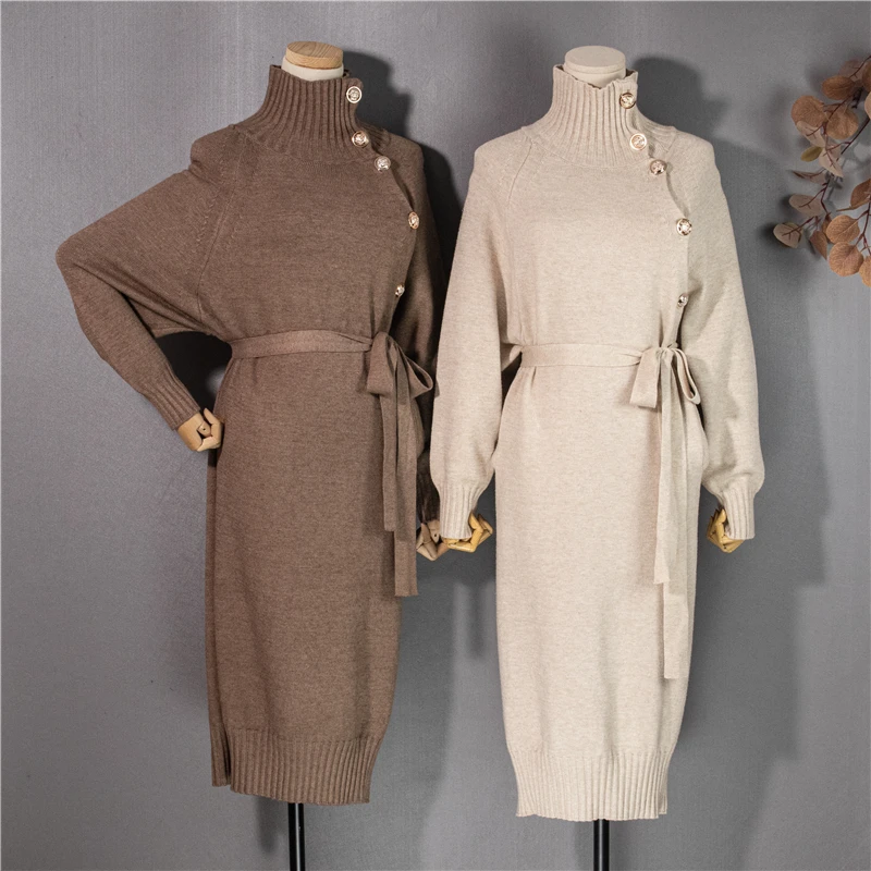 ColorfaithНовинка 2022 года; Вязаное платье с карманами и высоким воротником на шнуровке; Сезон весна-осень; Женские модные длинные платья в Корейском стиле; DR3042JX