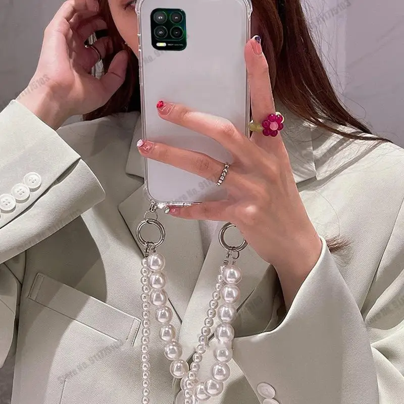 Жемчужный чехол для браслетов с ремешком и цепочкой для POCO X3 Pro...