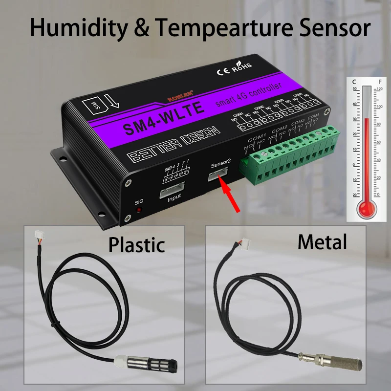 Интерфейсы датчика: 2, поддержка подключения только с датчиком температуры и температуры с датчиком влажности.Длина кабеля датчика: 1 метр