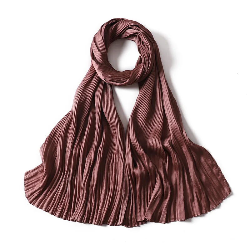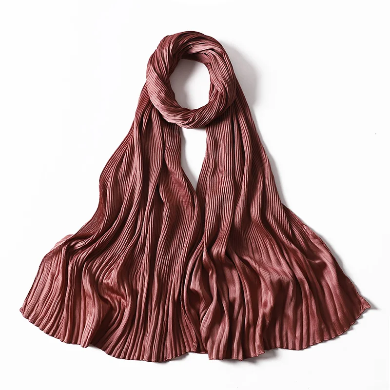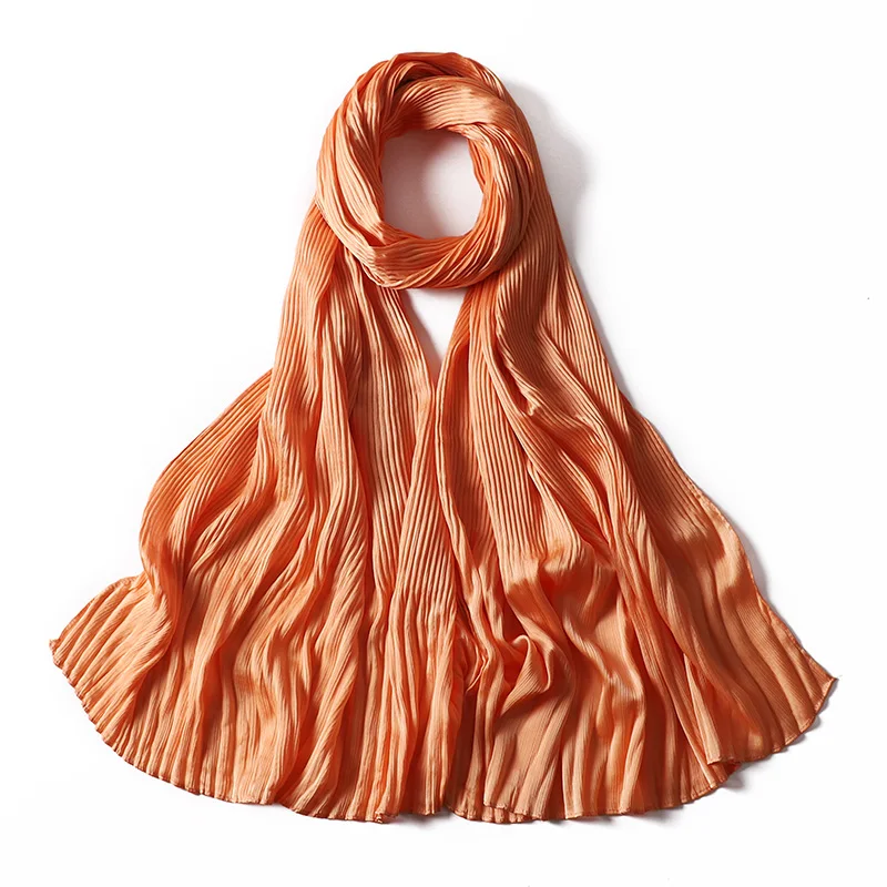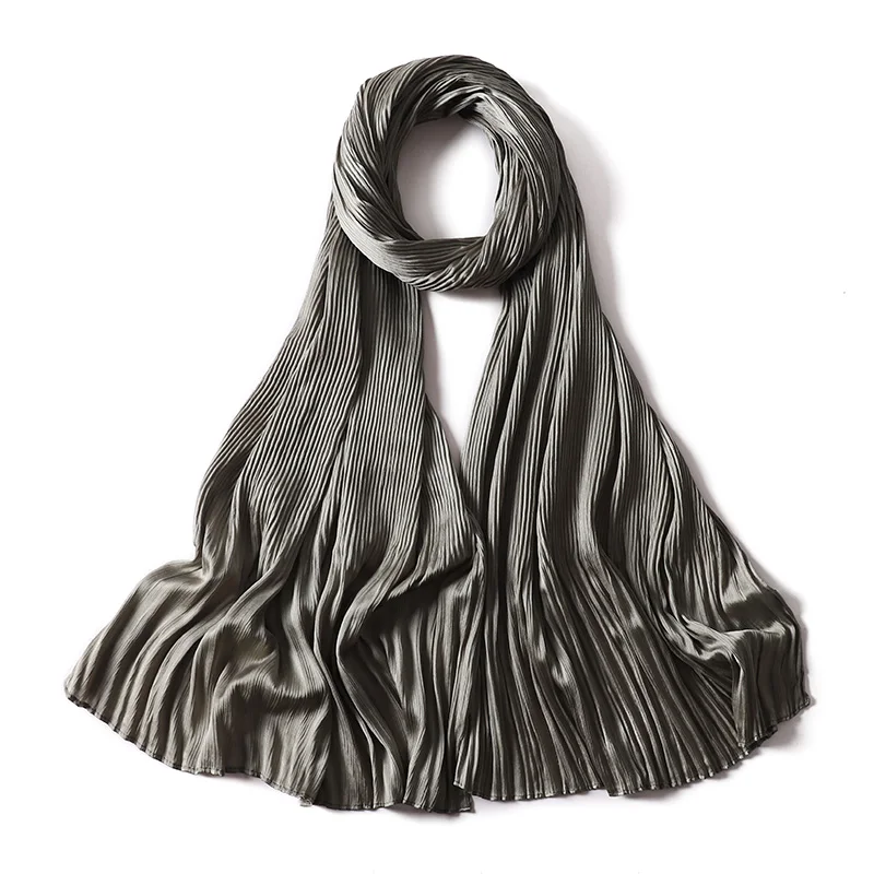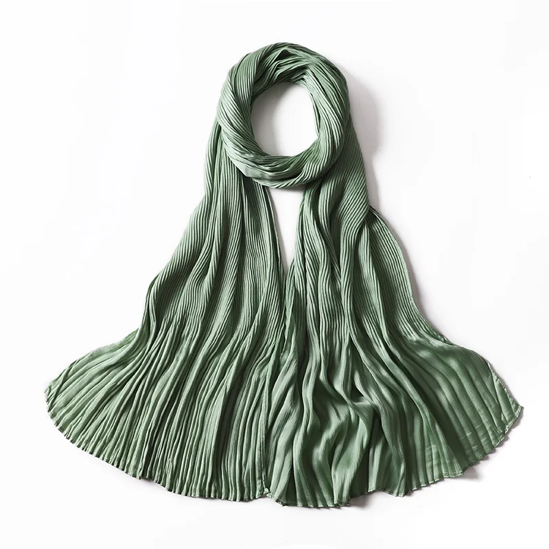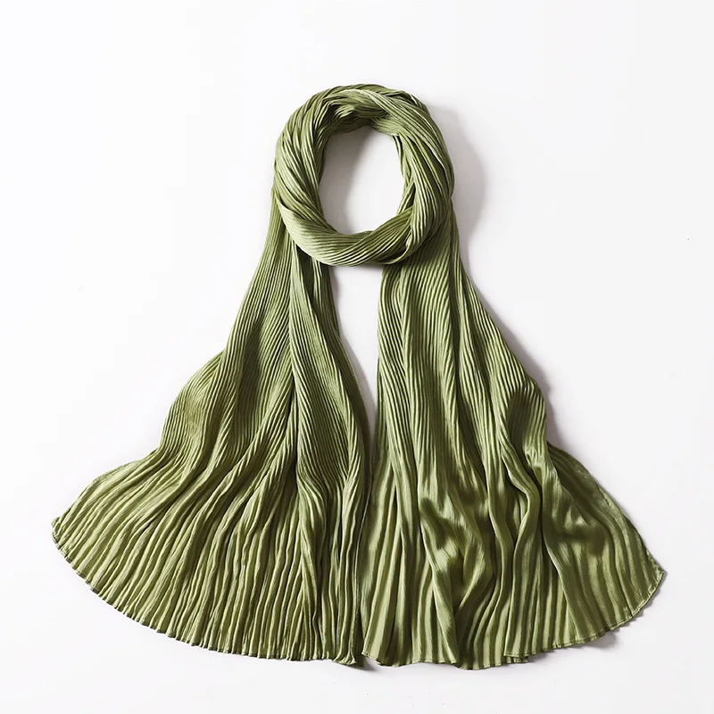 Шелковый однотонный шарф Hijabs для женщин, шарфышарфы, плиссирован...