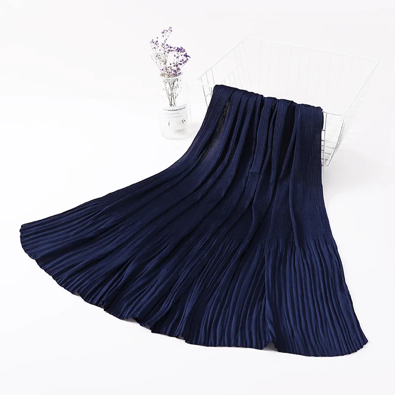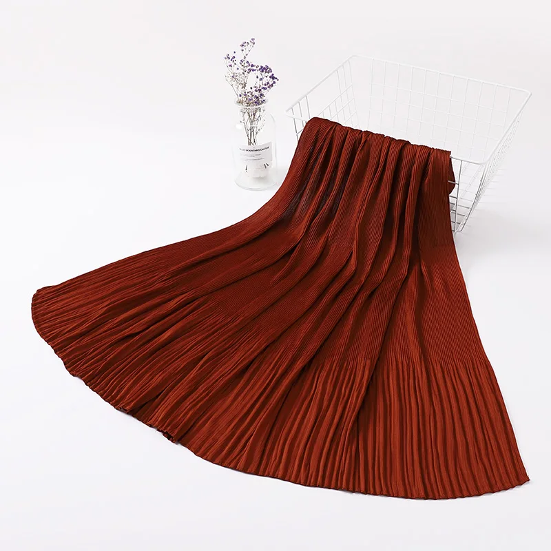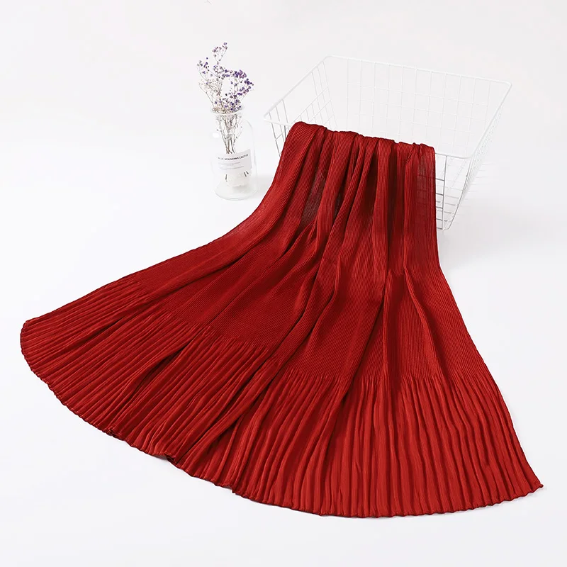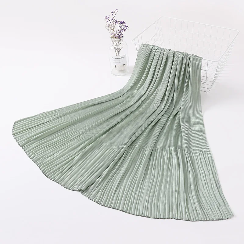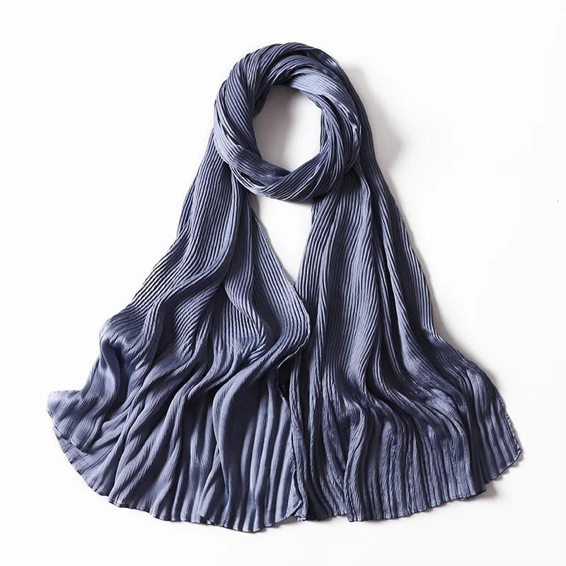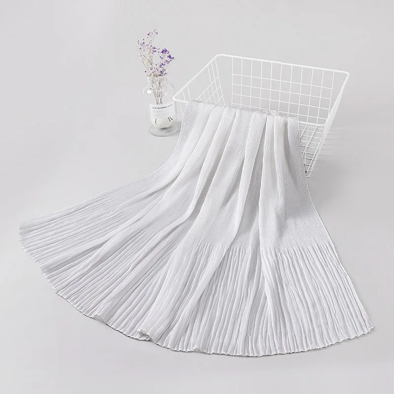 Шелковый однотонный шарф Hijabs для женщин, шарфышарфы, плиссирован...