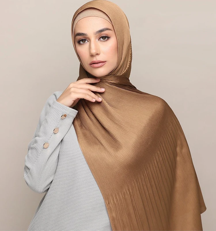 Индивидуальные хиджабы с плиссированными атласными шелковыми шалька...