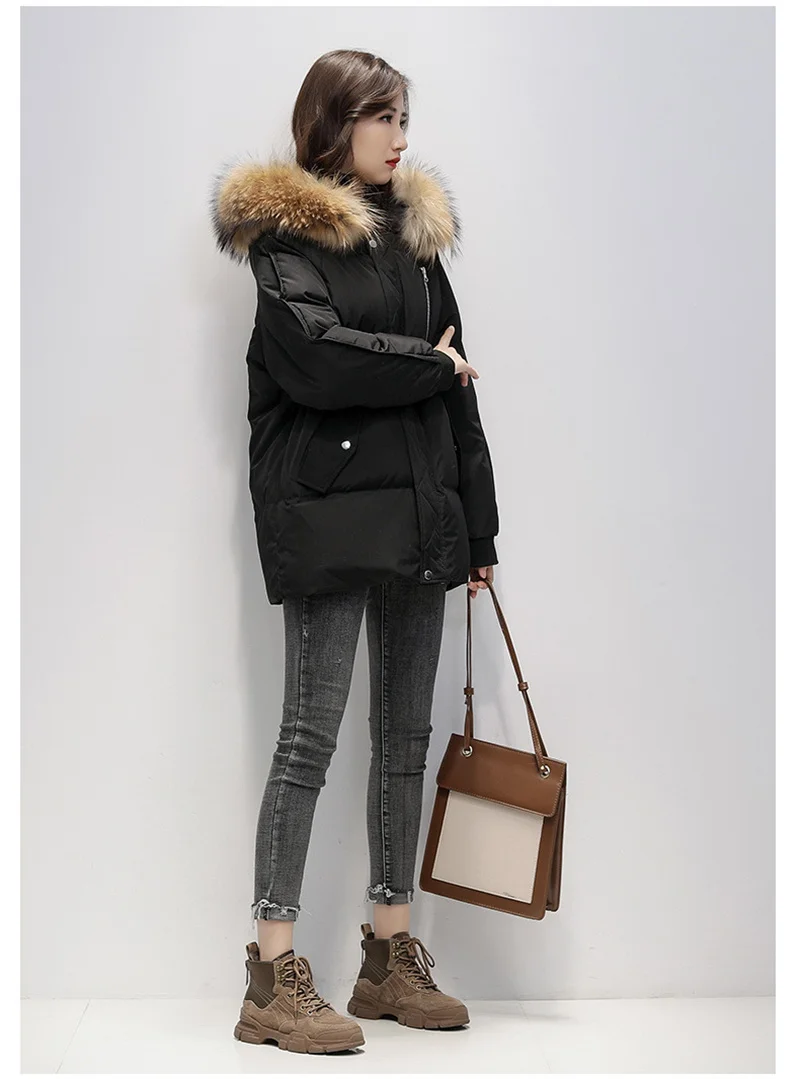 Luzuzi 2021 Новая зимняя Женская парка с меховым воротником куртки ...