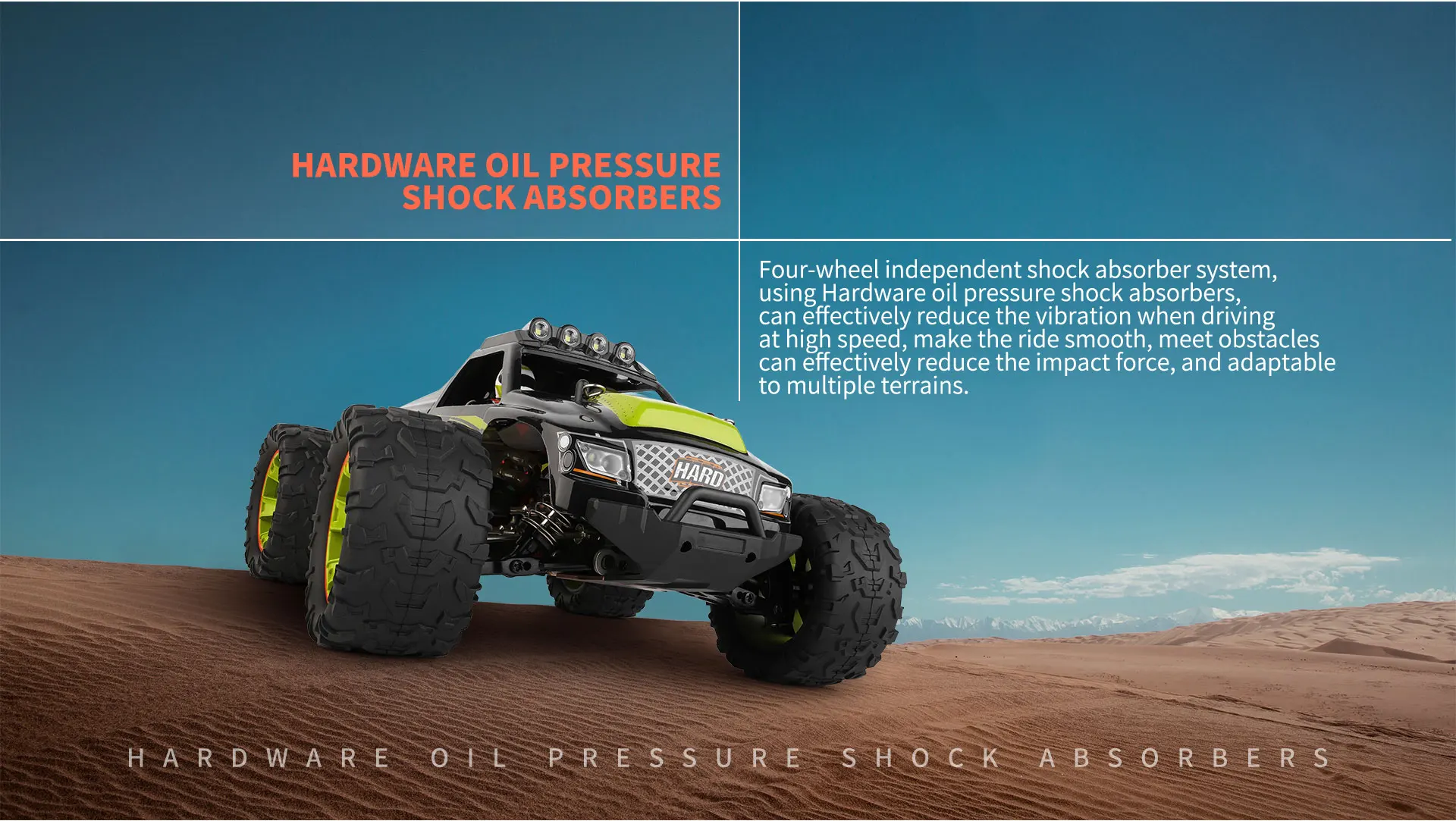 Четырехколесная независимая система амортизатора удара,Использование аппаратных амортизаторов давления масла,Может эффективно уменьшить вибрацию во время вожденияНа высокой скорости, сделать езду гладкой, встретить препятствияМожет эффективно уменьшить ударную силу и адаптироватьсяДля нескольких участков.