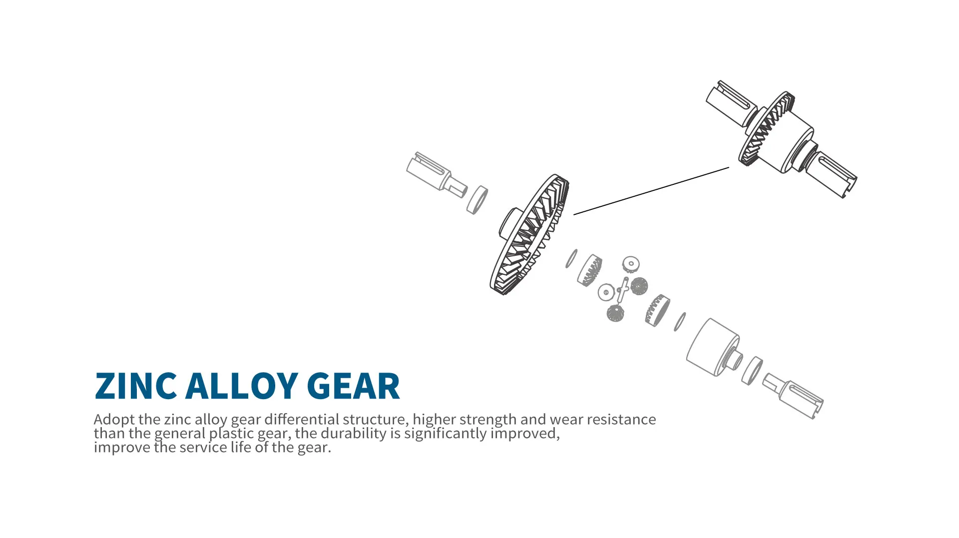 Принять дифференциальную структуру шестерни сплава цинка, более высокую прочность и износостойкостьЧем обычная пластиковая шестерня, прочность значительно улучшается,Улучшите срок службы шестерни.