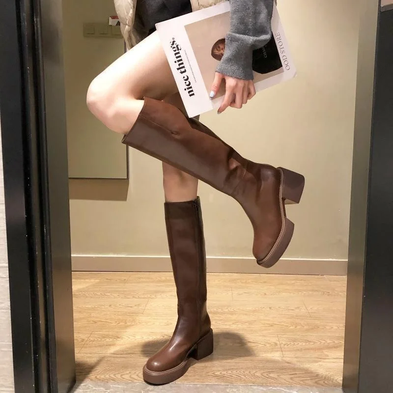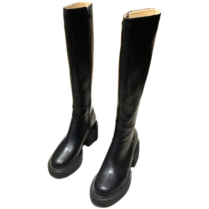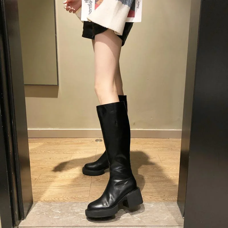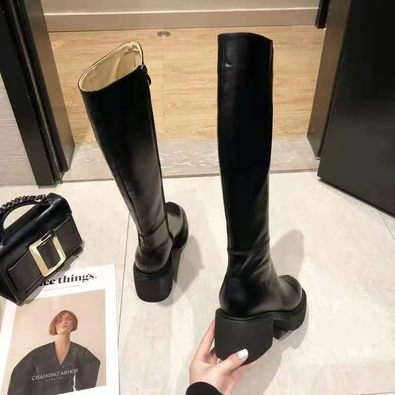 Женские сапоги ботинки женские зима челси натуральная кожа ботинки на платформе Женские сапоги до колена на среднем каблуке, теплые мотоциклетные сапоги на молнии, на толстой платформе, Осень-зима 2021