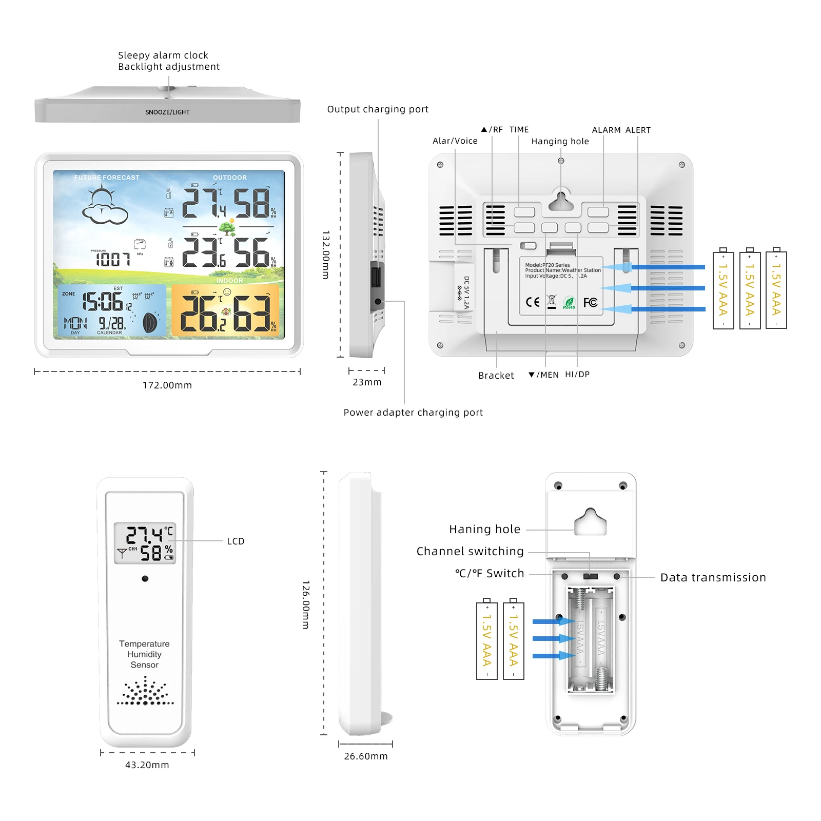 Protmex PT20 метеостанция часы беспроводной цифровой термометр гигрометр прогноз календари Луна фаза повтора будильник icon star icon star icon star icon star icon star