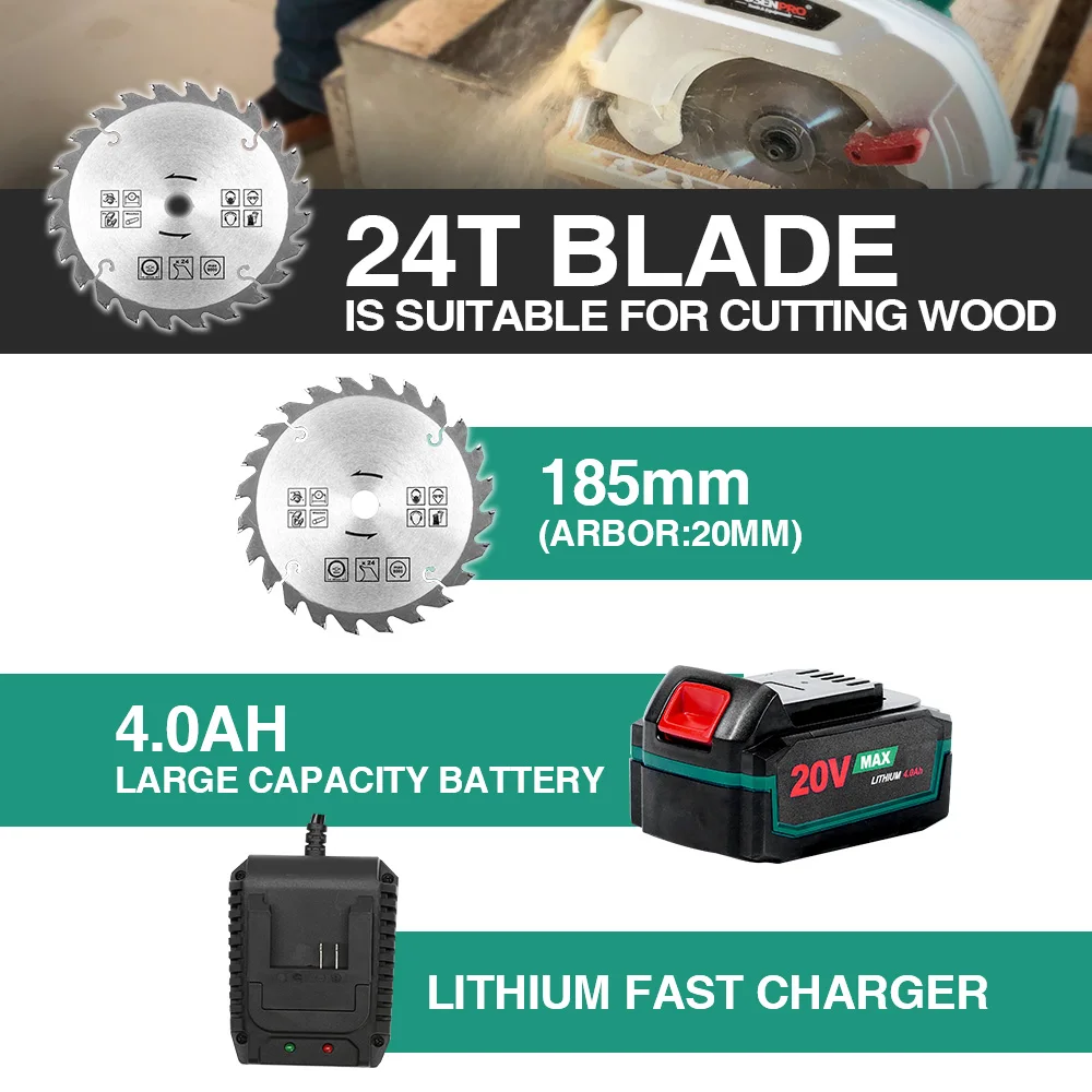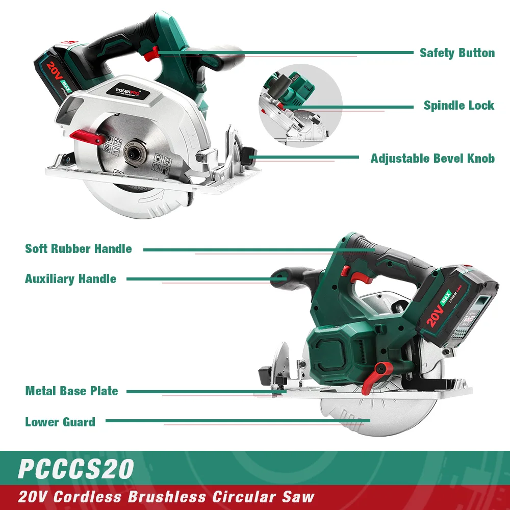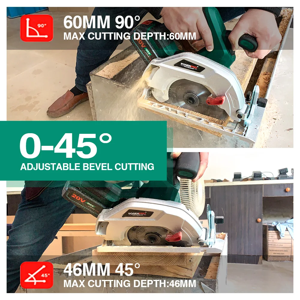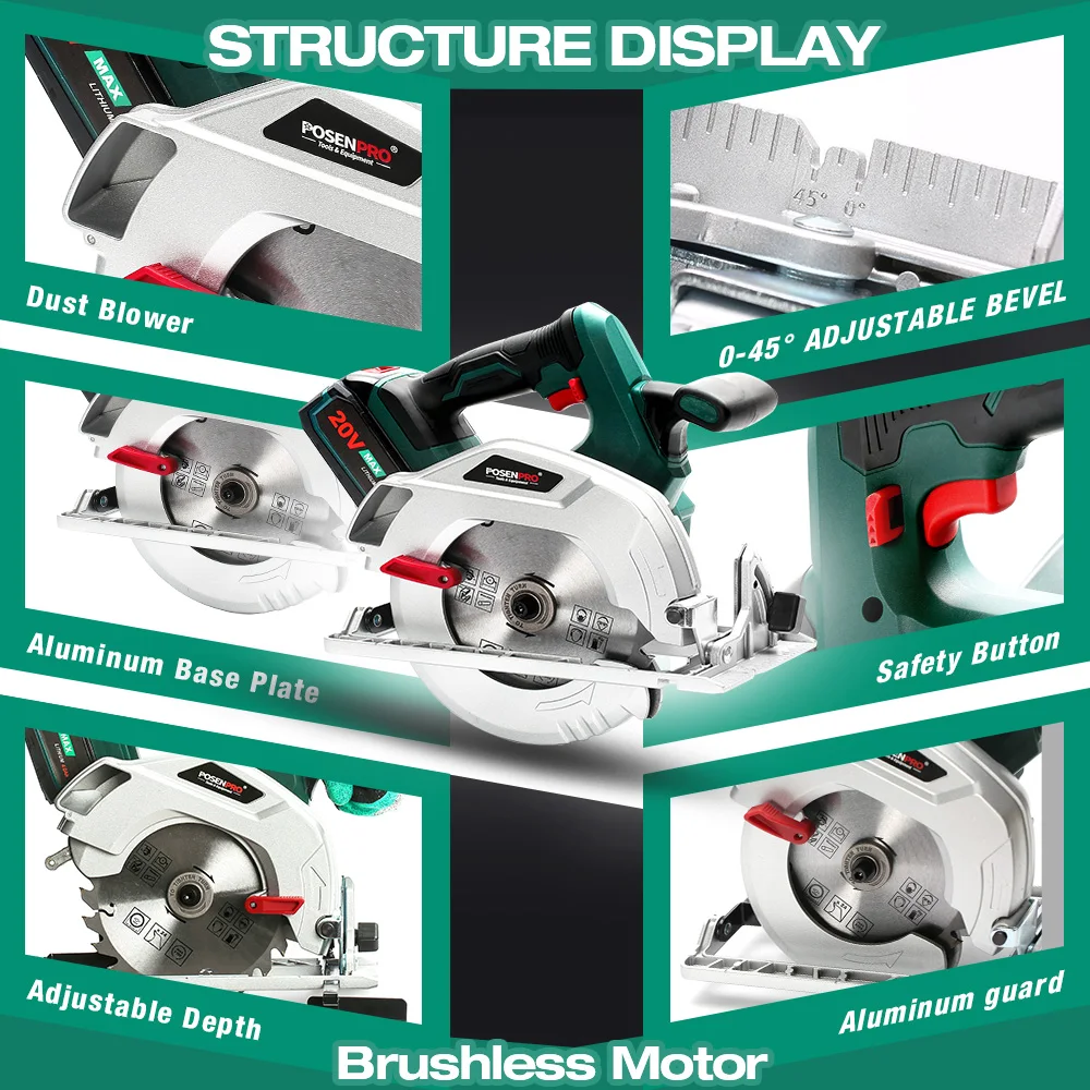 Пила циркулярная POSENPRO, бесщеточная, 20 в, 4,0 Ач