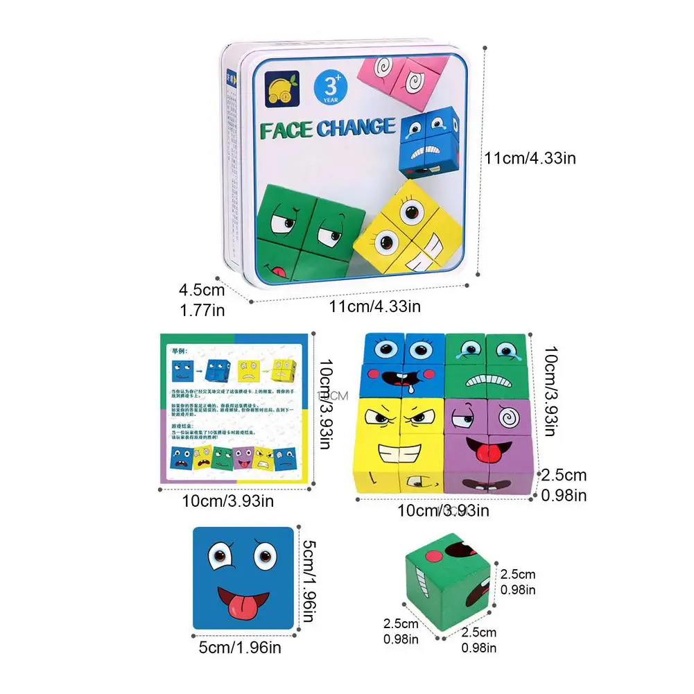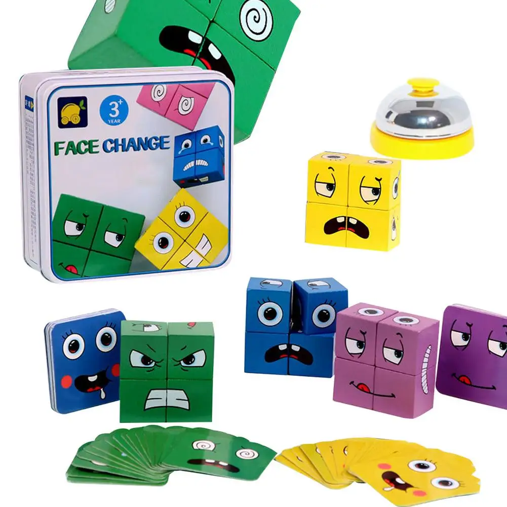 Новые Деревянные игрушки в виде выражений, волшебные деревянные Мультяшные кубики, узор лица, строительные блоки, развивающие игрушки Монтессори для детей