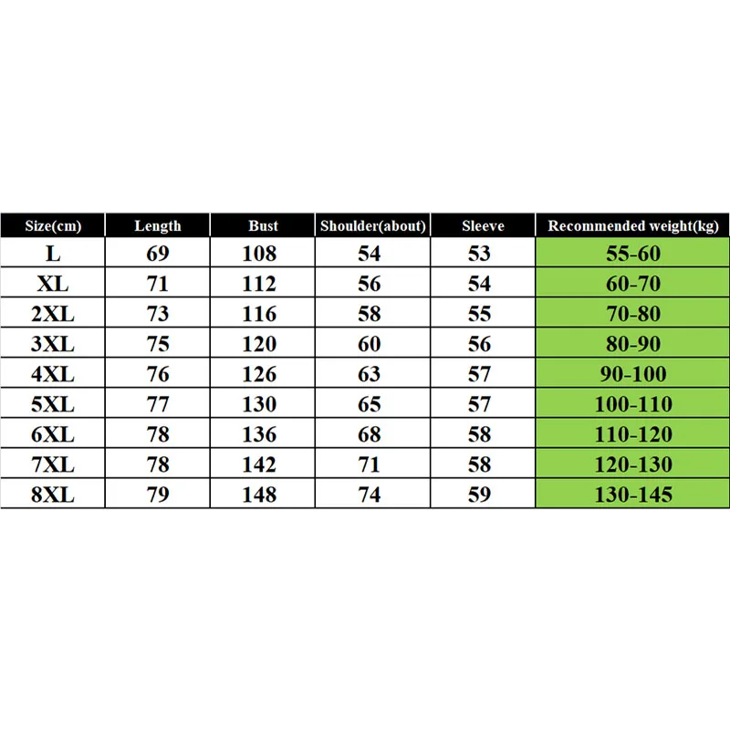 2XL длина: 73 бюст: 116 Плечо (около):58 рукав: 55 рекомендуемый вес (кг):70-80