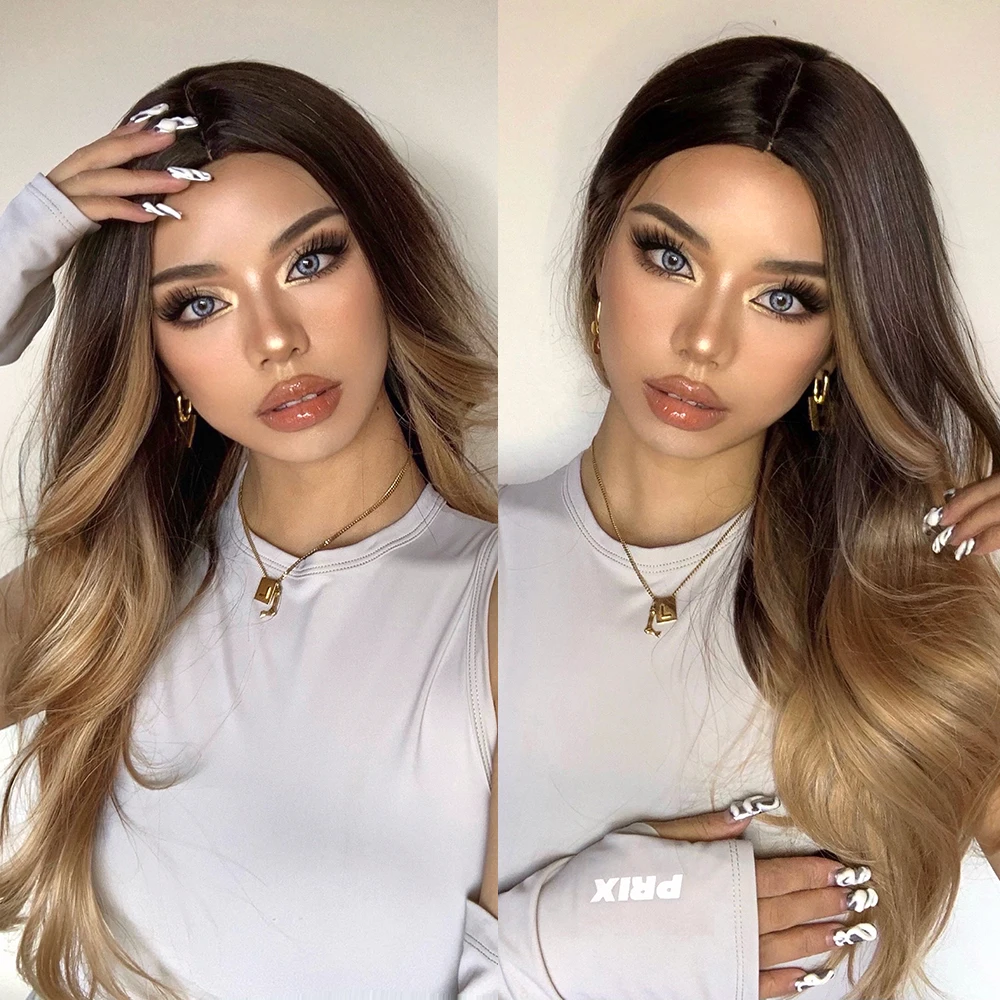 Парик LOUIS FERRE для женщин, длинные волнистые волосы черного и коричневого цвета, термостойкие синтетические, средней длины, для косплея
