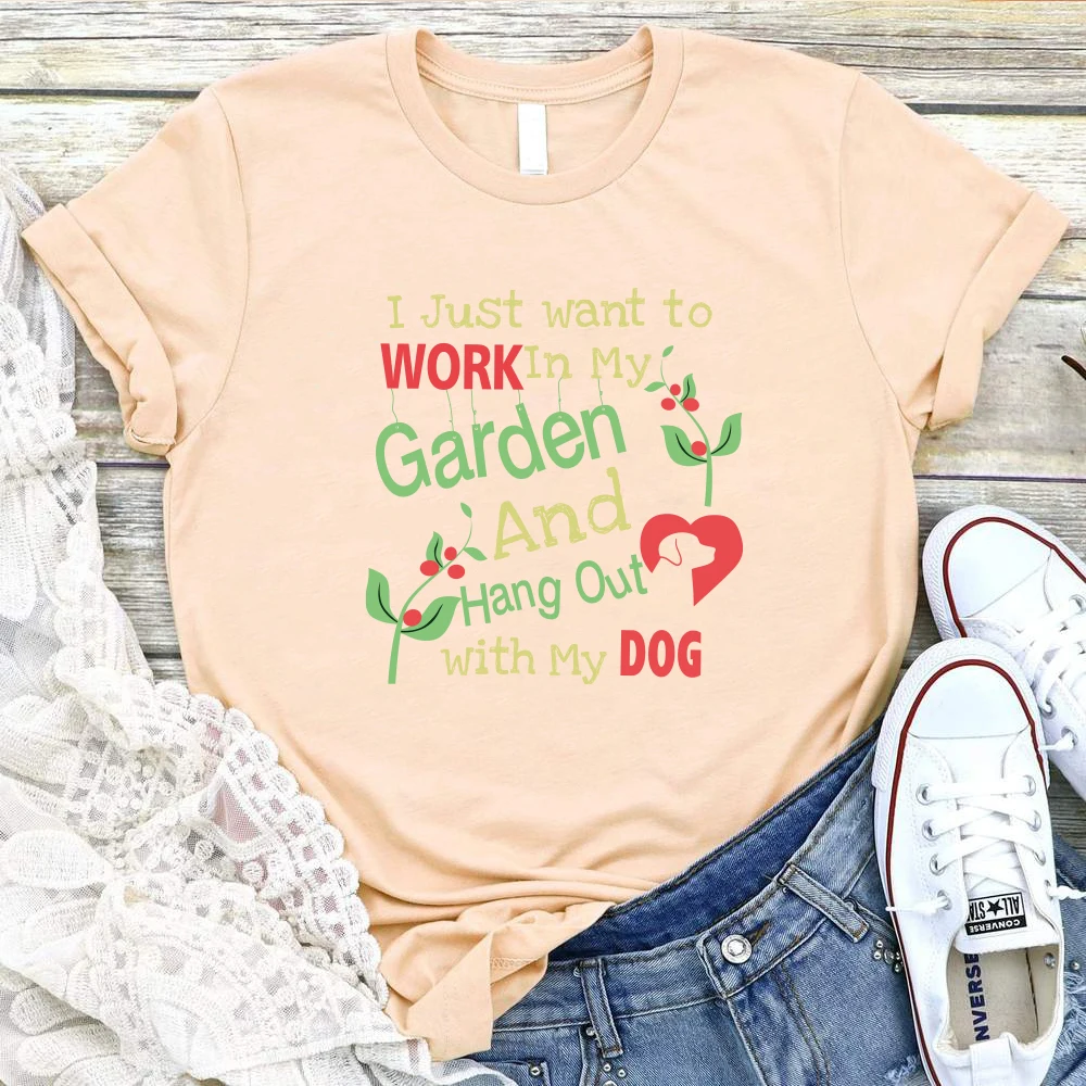 Я просто хочу работать в моем саду, забавные женские футболки в стиле Харадзюку, летняя свободная футболка с круглым вырезом, повседневная женская рубашка, женские футболки