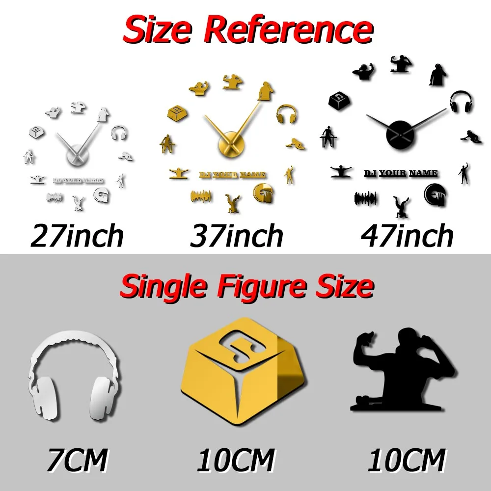 Бескаркасные 3D гигантские настенные часы для диджея и клуба, персонализированные акриловые часы с вашим именем для домашней музыкальной вечеринки