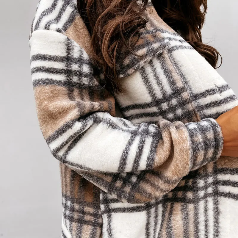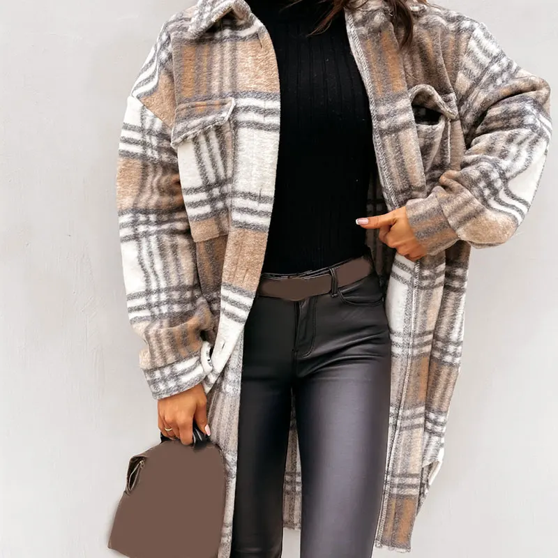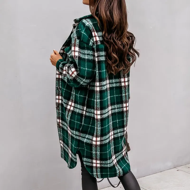 Повседневное мешковатое пальто на пуговицах, модные клетчатые куртки, кардиган, рубашка на пуговицах, длинное пальто, Женское шерстяное пальто средней длины с вырезом на воротнике