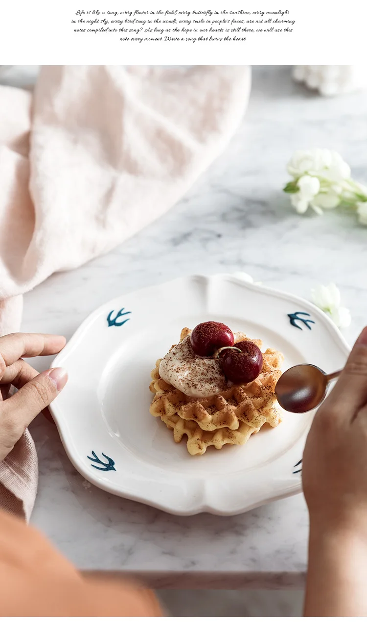 Рельефная тарелка Ласточка, простой маленький свежий десерт, тарелк...
