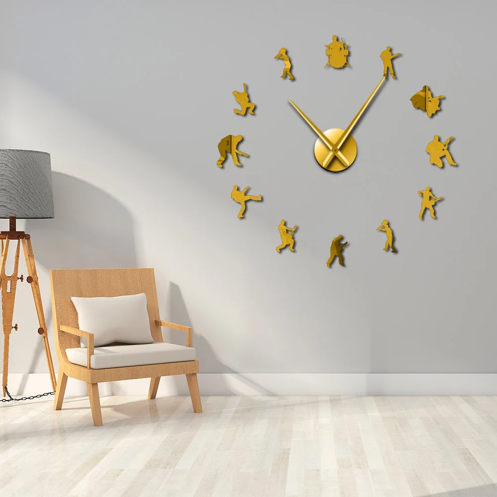 Музыкальный ремешок для прямой трансляции 3D бесшумные настенные часы набор цилиндров гитарный плеер декор для комнаты Акриловые зеркальные наклейки большие часы