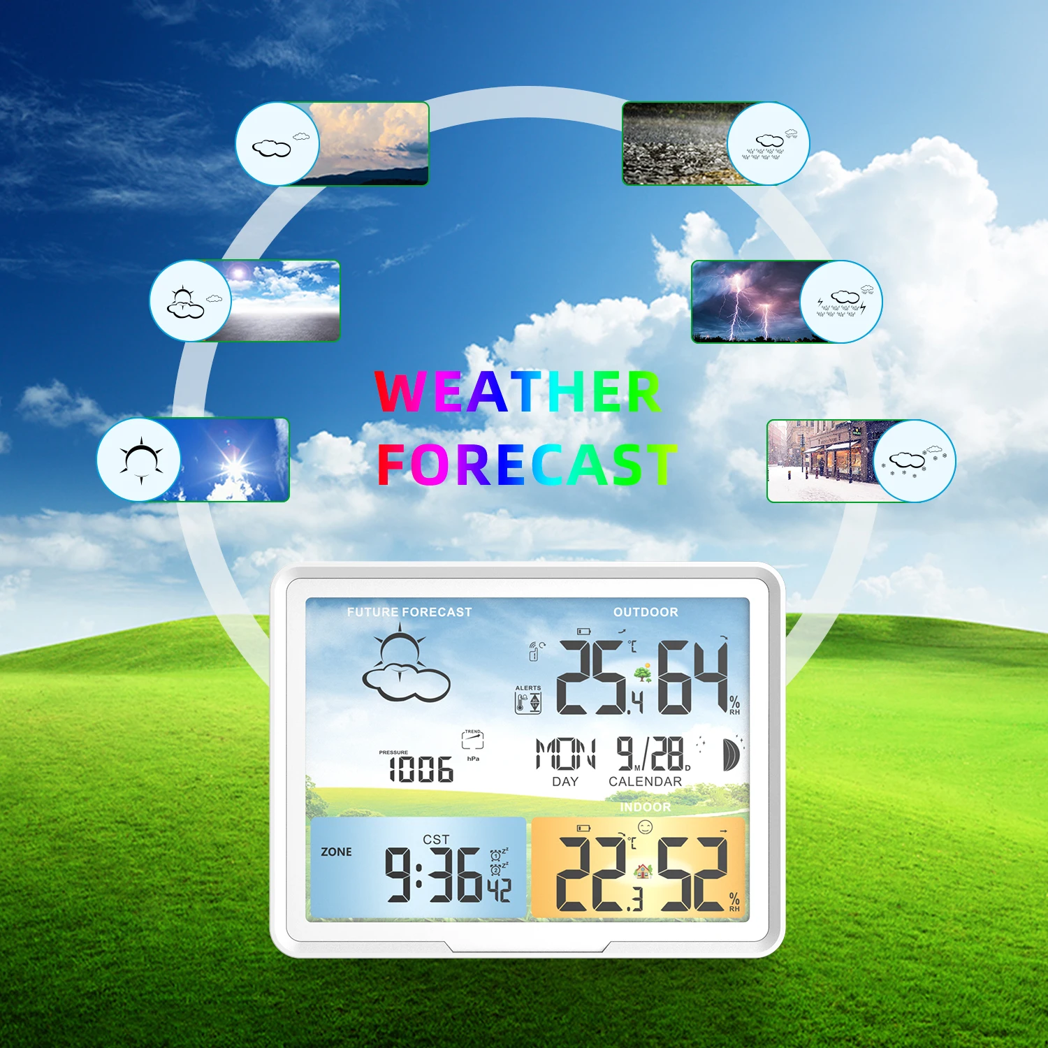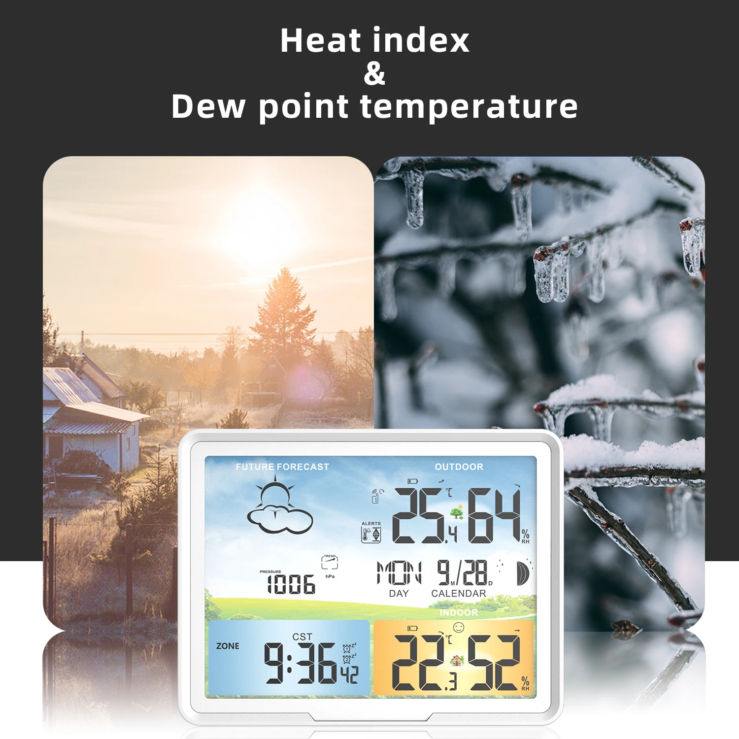 Protmex PT20 Многофункциональный цифровой Метеостанция Будильник. Имеет функции термометра, гигрометра и барометра, настройте беспроводной датчик. Эти данные могут быть использованы для предсказания погодных условий в будущем. Он не только позволяет узнать время и календарь, температуру точки росы и индекс тепла. Мороз и оповещение о температуре, выражение уровня комфорта в помещении, но и поможет вам в вашей жизни. Подходит для различных мест, будь то на столе или на стене. Простой и современный дизайн-отличный инструмент и домашний декор.
