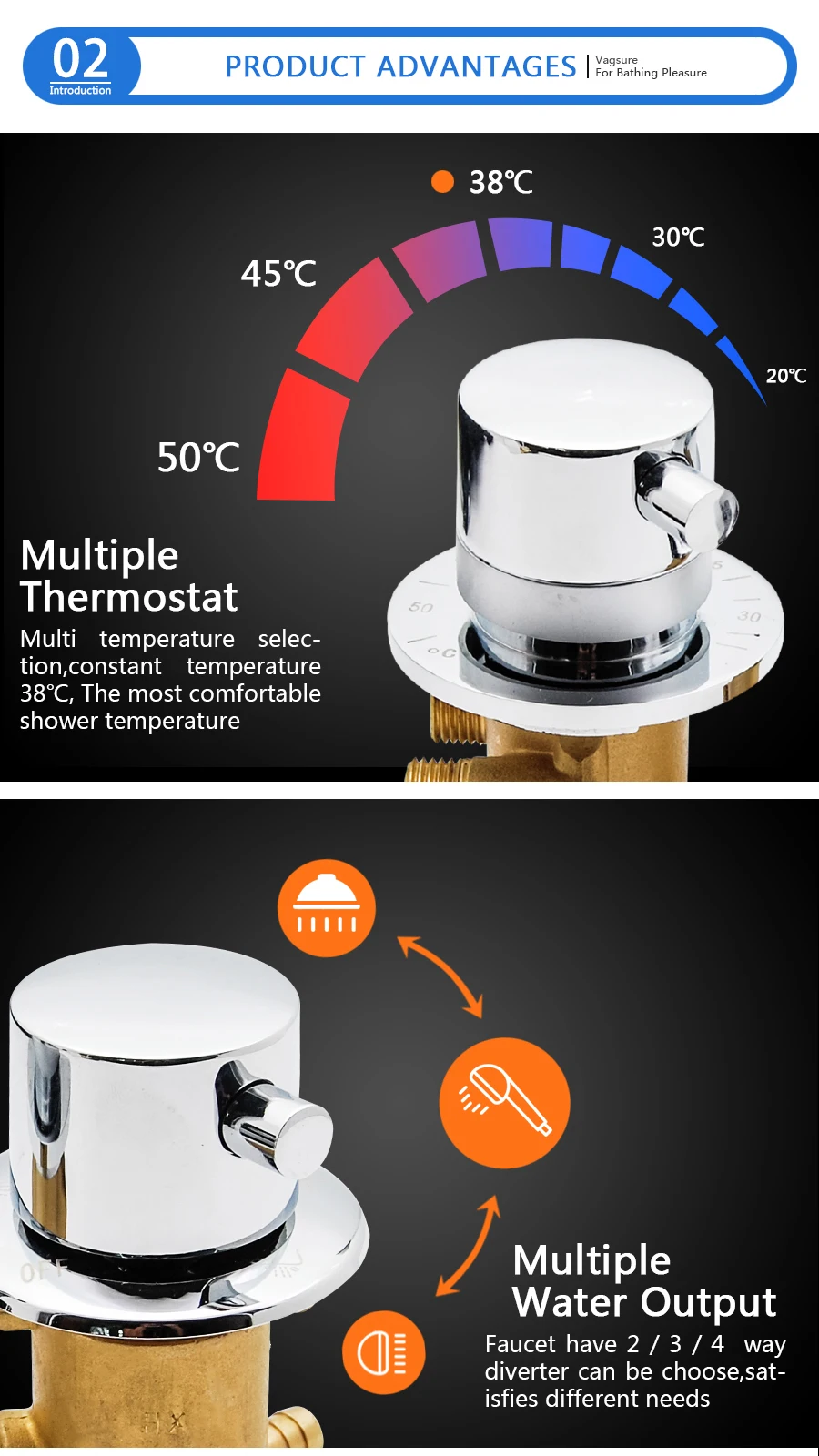 Термостатические Смесители для душа, 234 выхода, 10 см12,5 см, интубация, латунный смесительный клапан, кран с контролем температуры для ванной комнаты