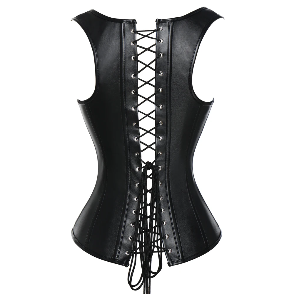 Женский корсет в стиле стимпанк со стальными косточками на шнуровке сзади, сексуальное тело, Черный корсет большого размера