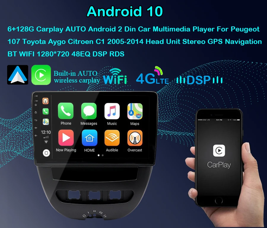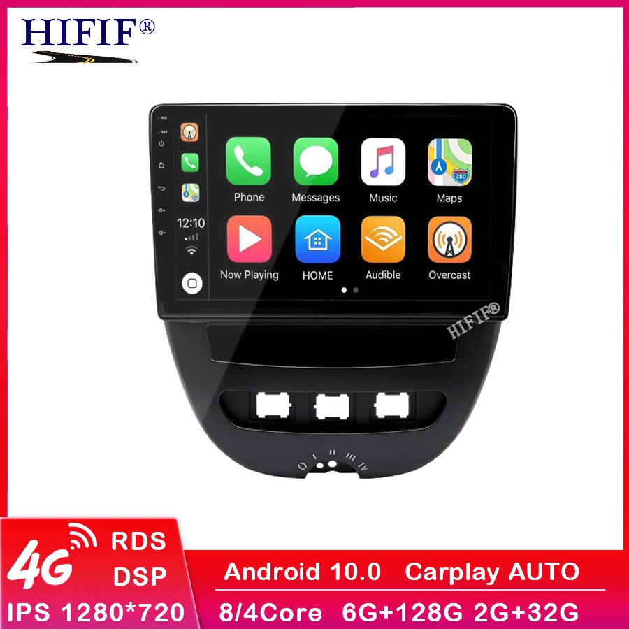 Автомобильный мультимедийный плеер 2 Din, Android 10, для Peugeot 107, Toyota Aygo, Citroen C1 2005-2014, стерео, GPS-навигация, BT, Wi-Fi