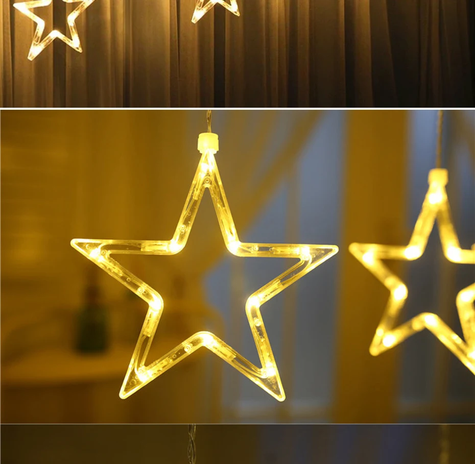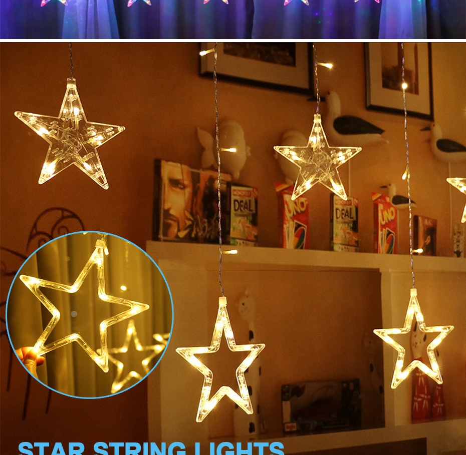 Светодиодные рождественские украшения, Сказочная гирлянда, 2,5 м, Звездные занавески, огни для праздника, вечеринки, свадьбы, рождественской елки, балкона, окна, спальни, Декор