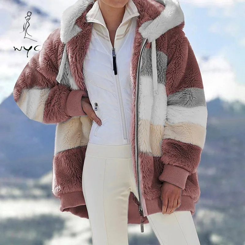 Женское зимнее теплое плюшевое пальто с капюшоном, свободные куртки...