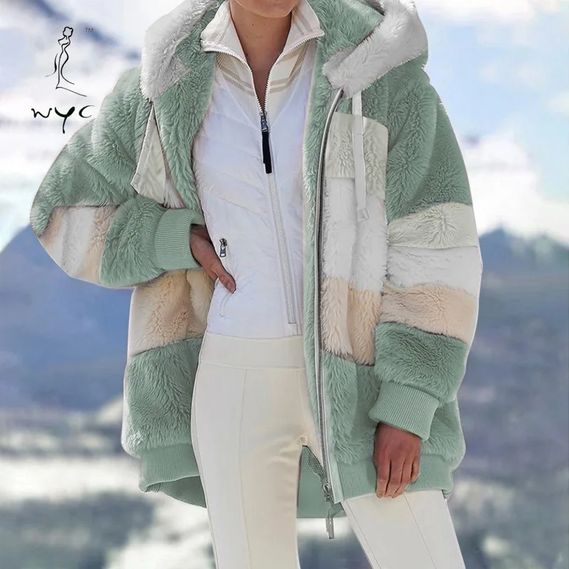 Зимнее женское плюшевое пальто, модная куртка с капюшоном на молнии...
