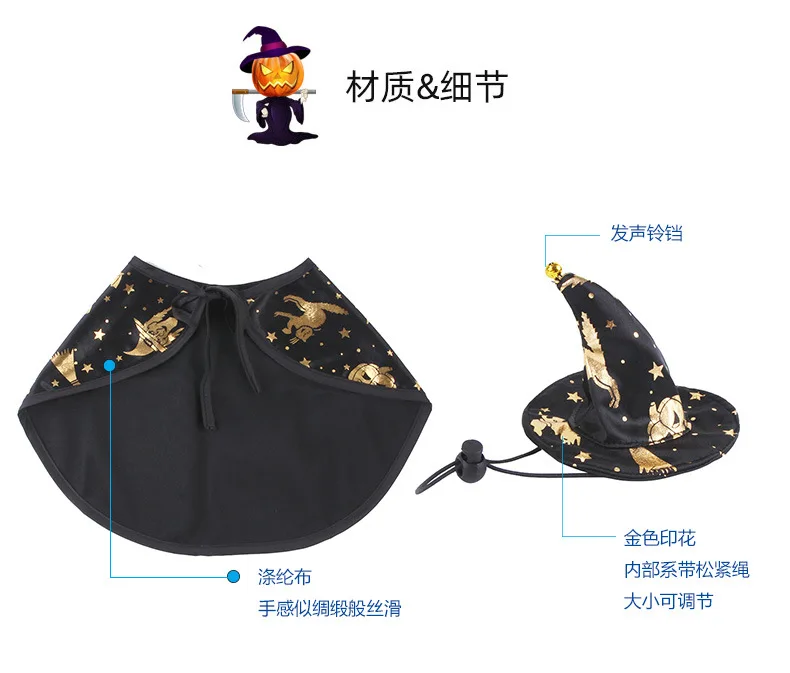 Новый костюм для домашних животных на Хэллоуин, накидка волшебника, наряд для домашних животных, вечерние, аксессуары для маленьких и средних собак и кошек