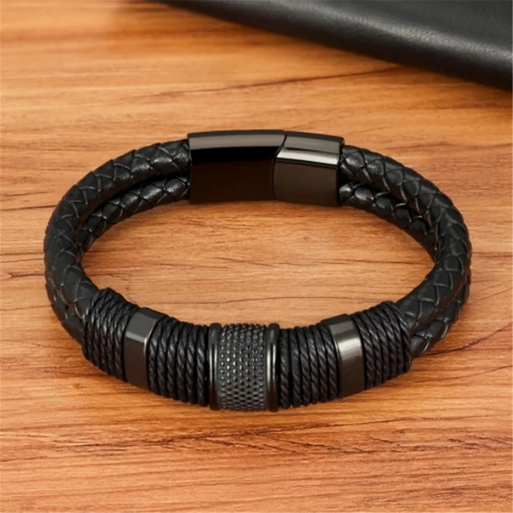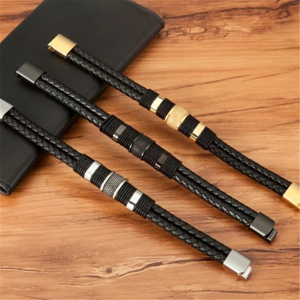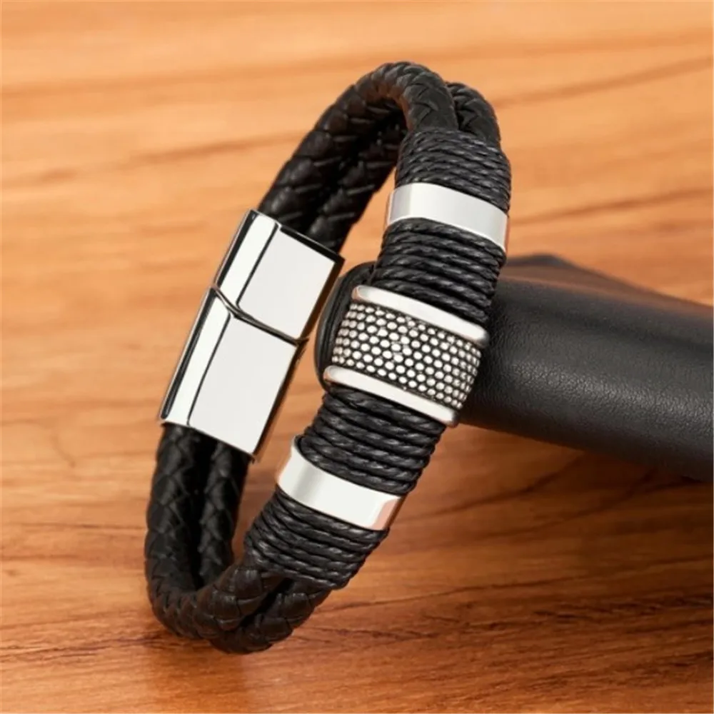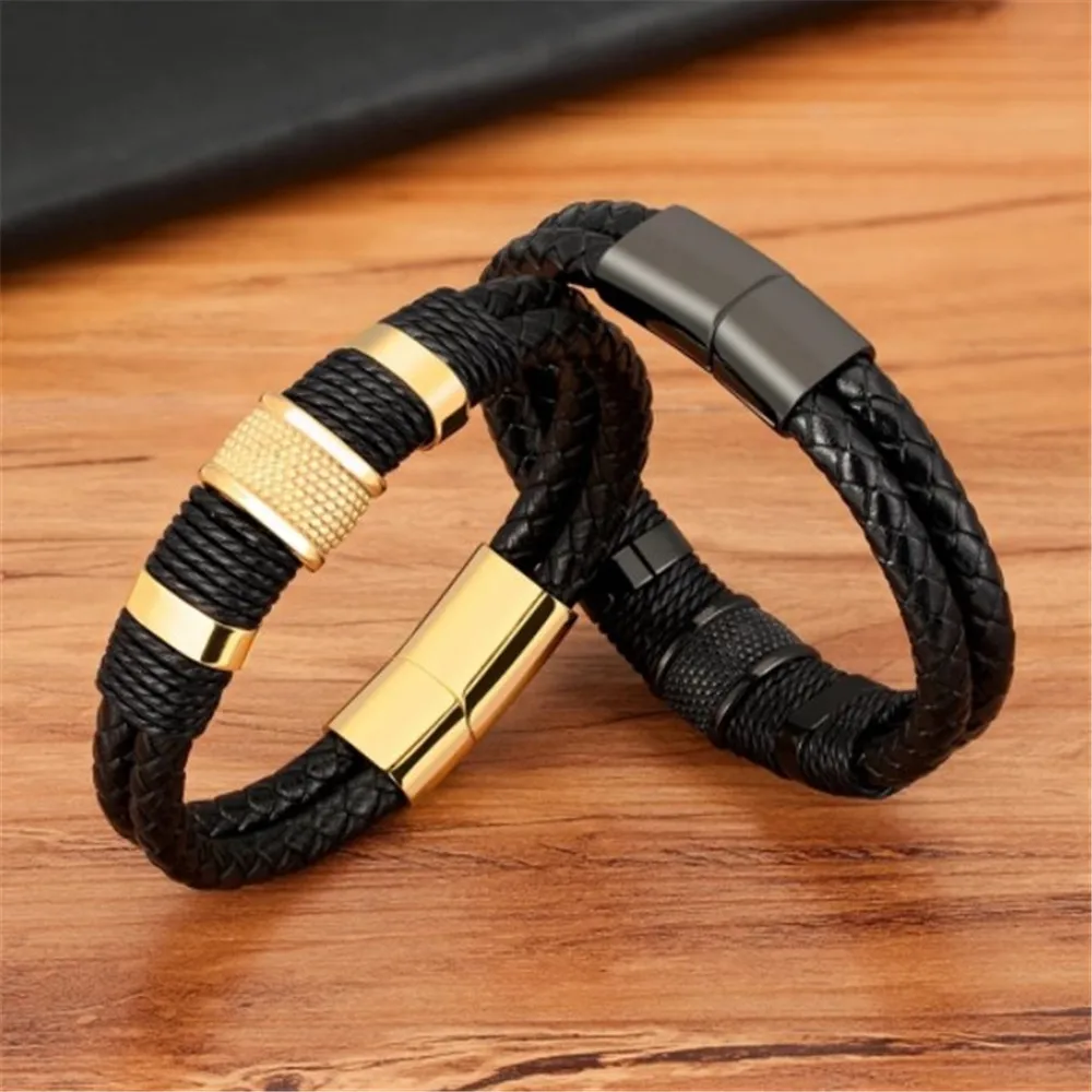Креативный браслет из титановой стали, мужской браслет с магнитной застежкой, мужской браслет из кожи, браслет из нержавеющей стали с магнитной застежкой в стиле панк