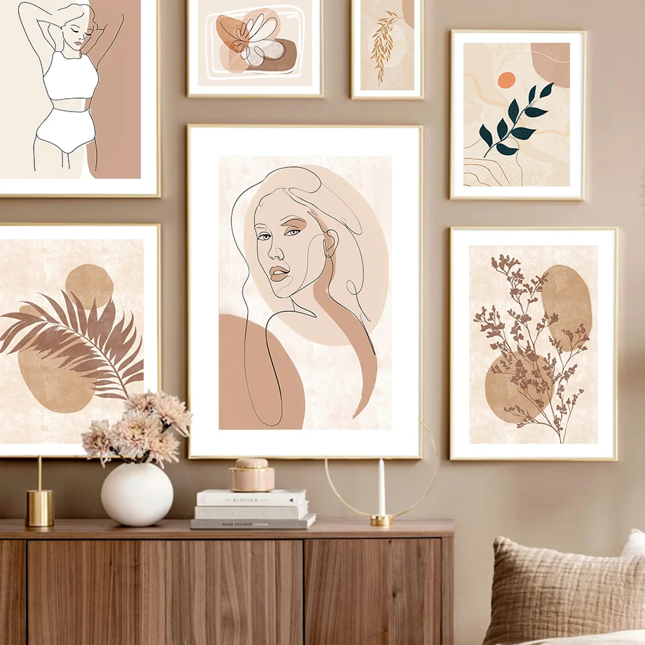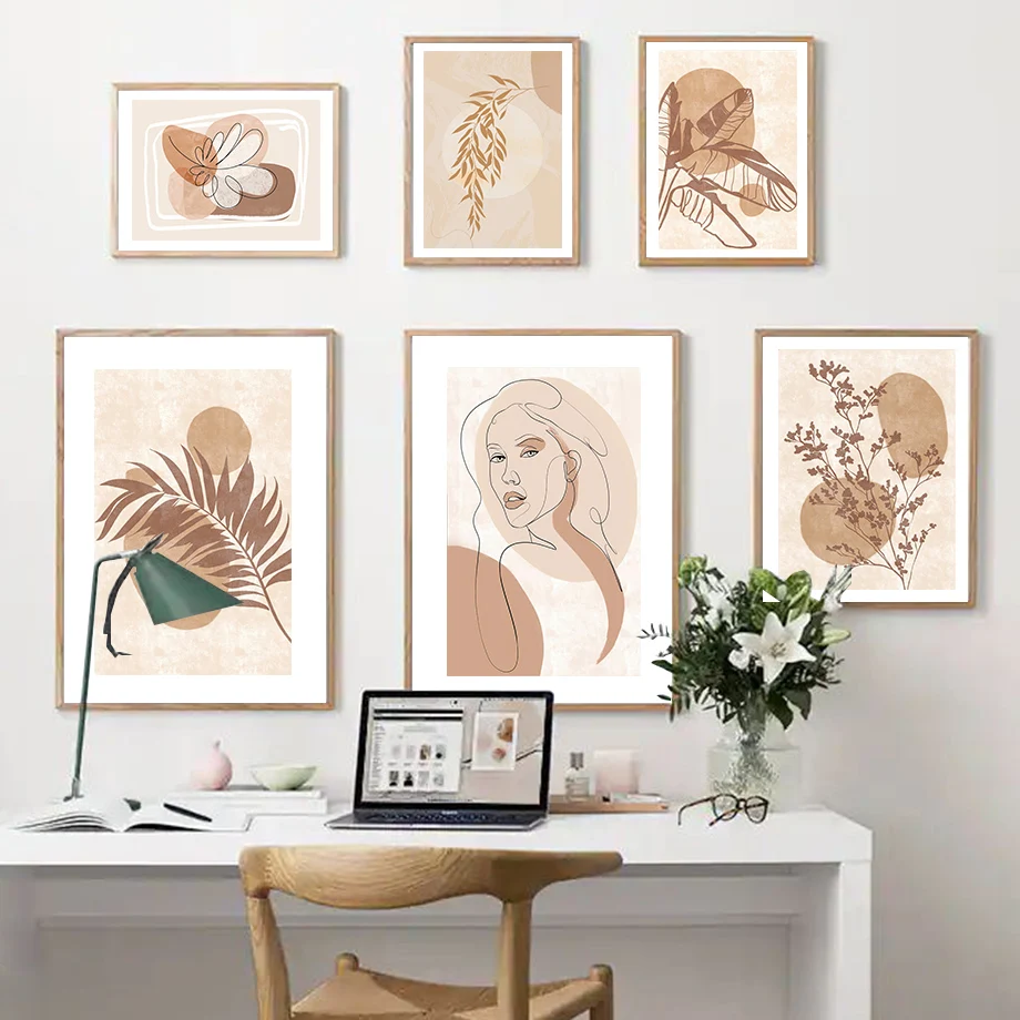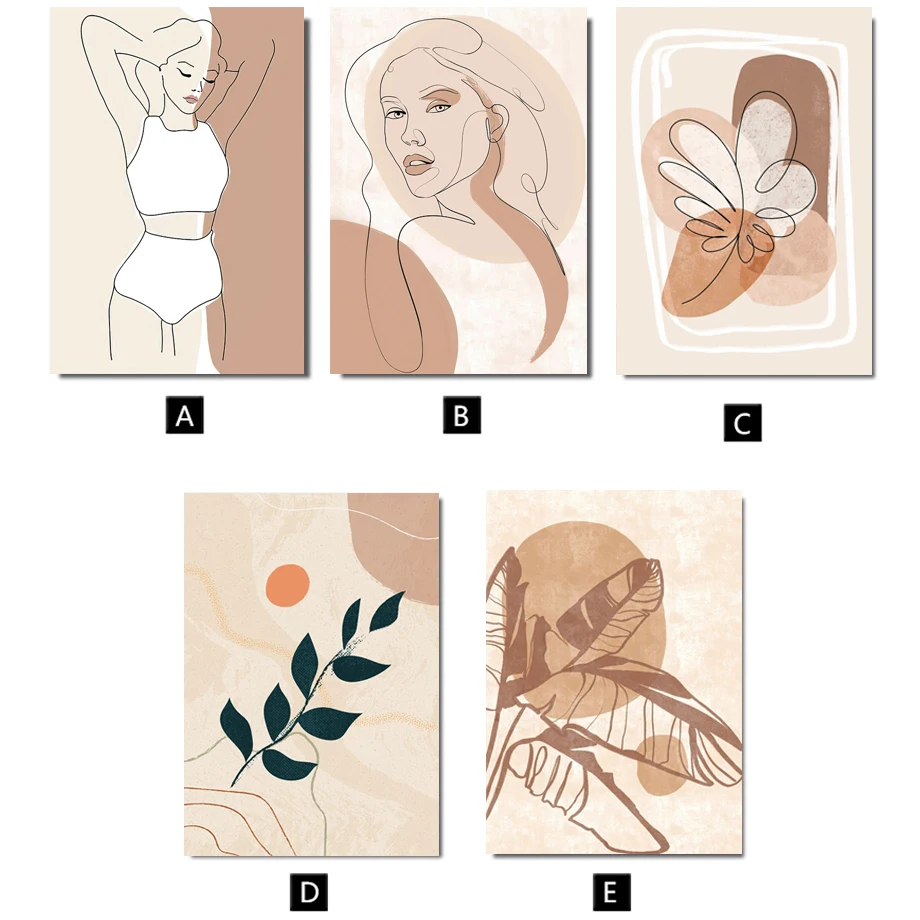 Абстрактные богемные линии солнце растение девочка ваза скандинавск...