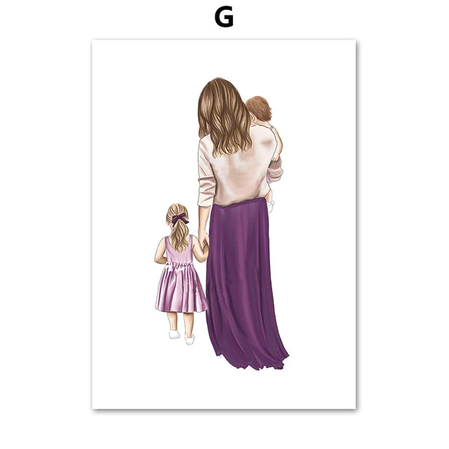 Мама, любовь, дочь, сын, принцесса, принц, поцелуй, настенное искусство, холст, живопись, скандинавские постеры и принты, Настенный декор, художественные картины для.